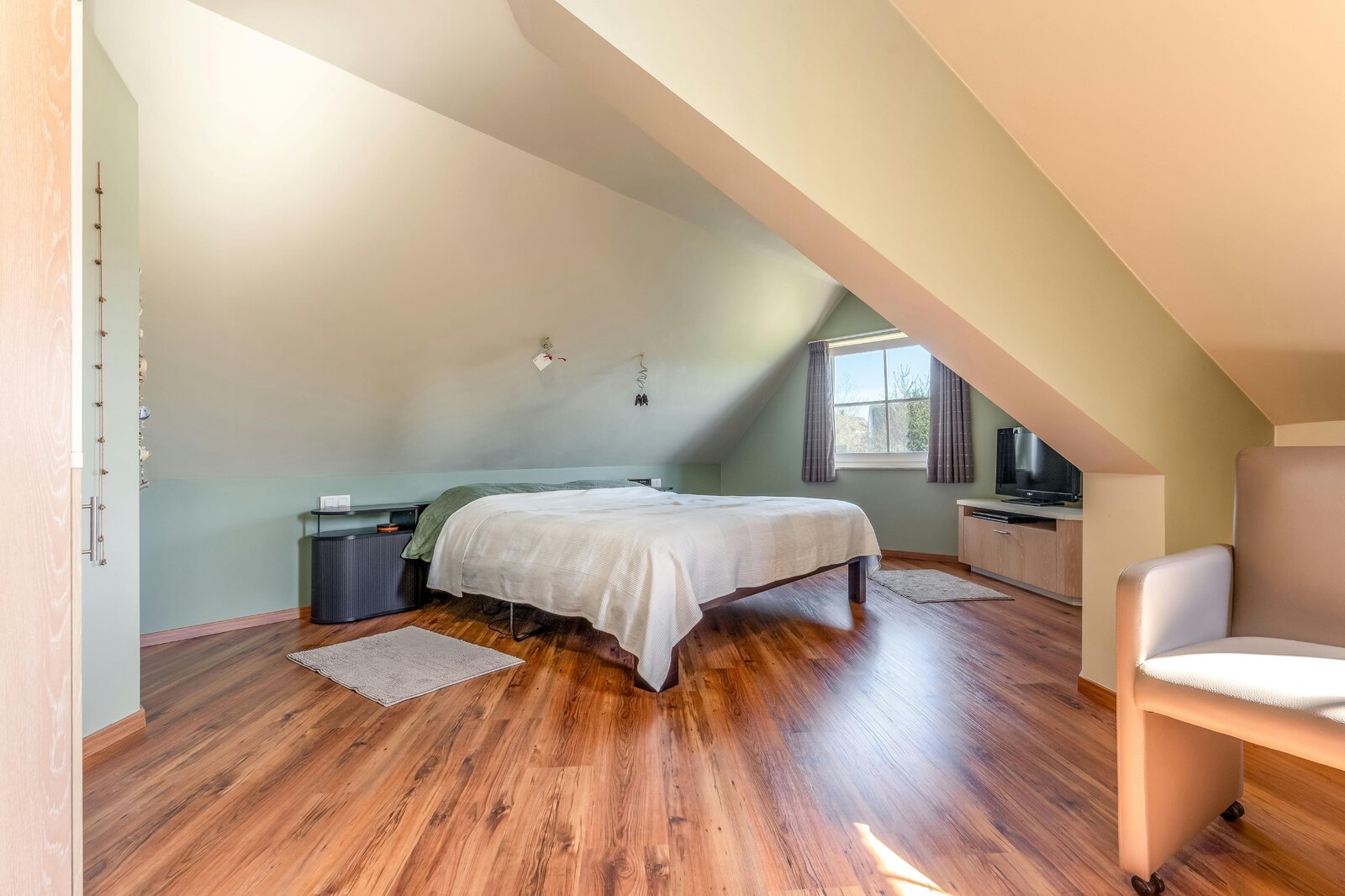 De inpandige garage biedt directe toegang tot de woning, terwijl de oprit plaats biedt aan maar liefst drie wagens.
