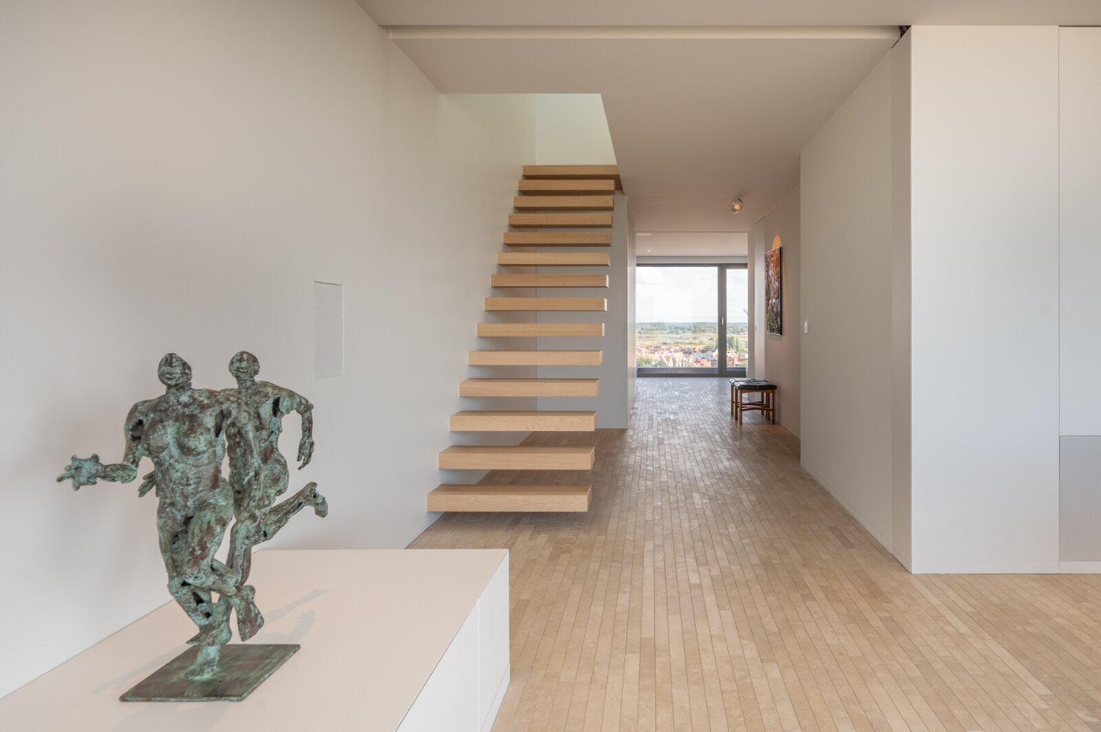 De volledige ondergrondse verdieping (-1), met plaats voor drie wagens, behoort eveneens exclusief tot dit appartement.