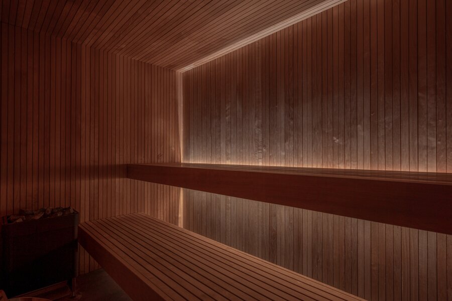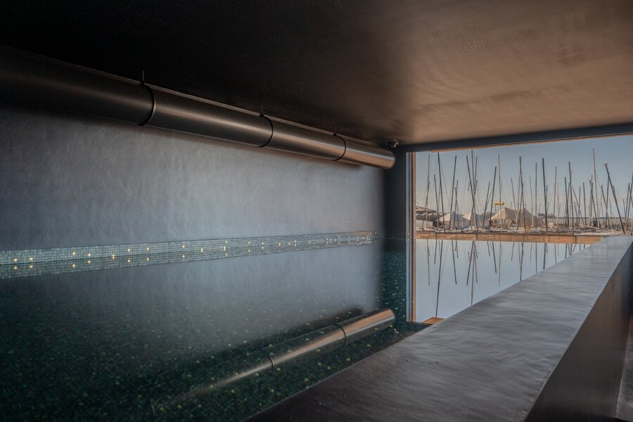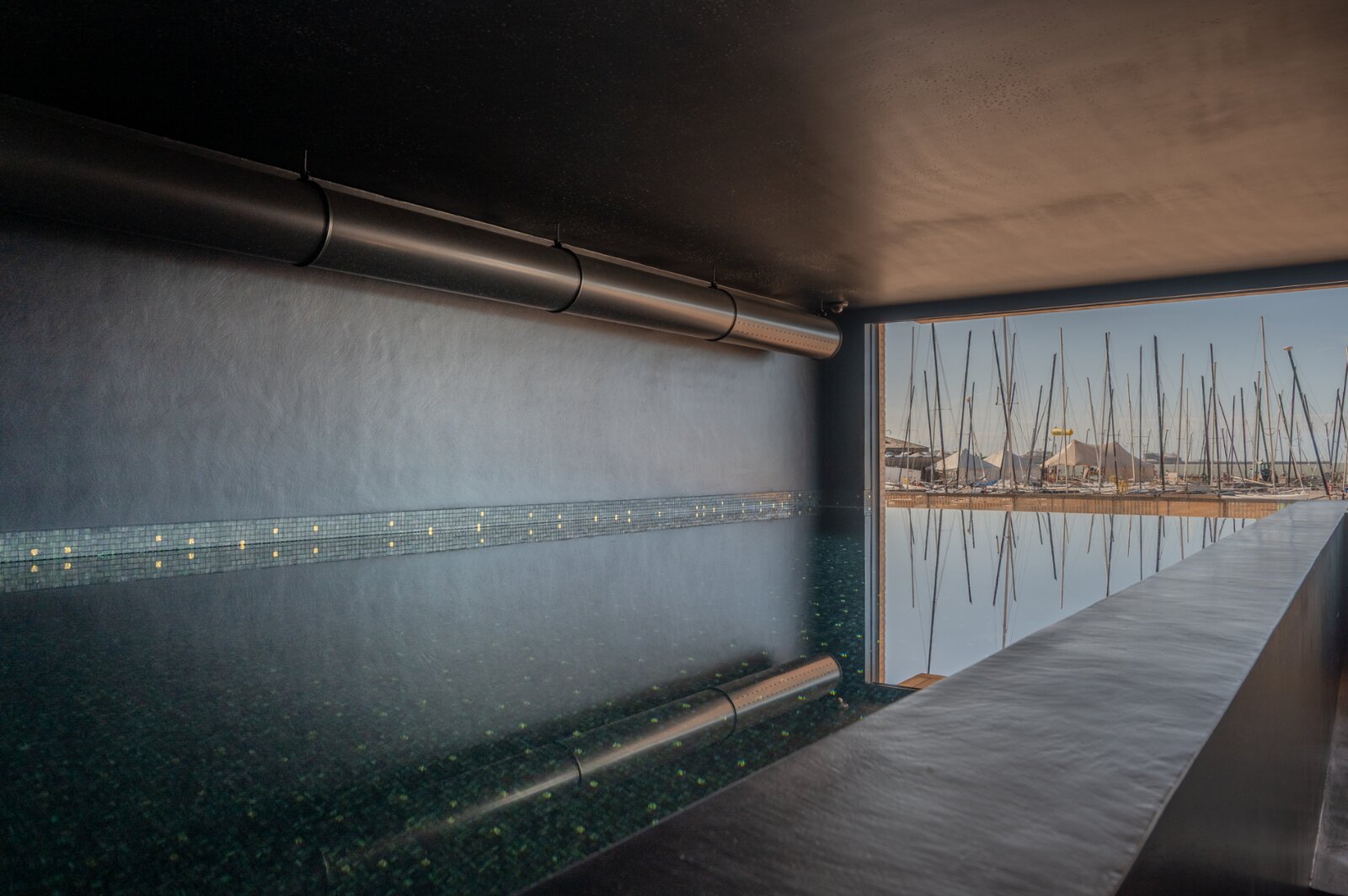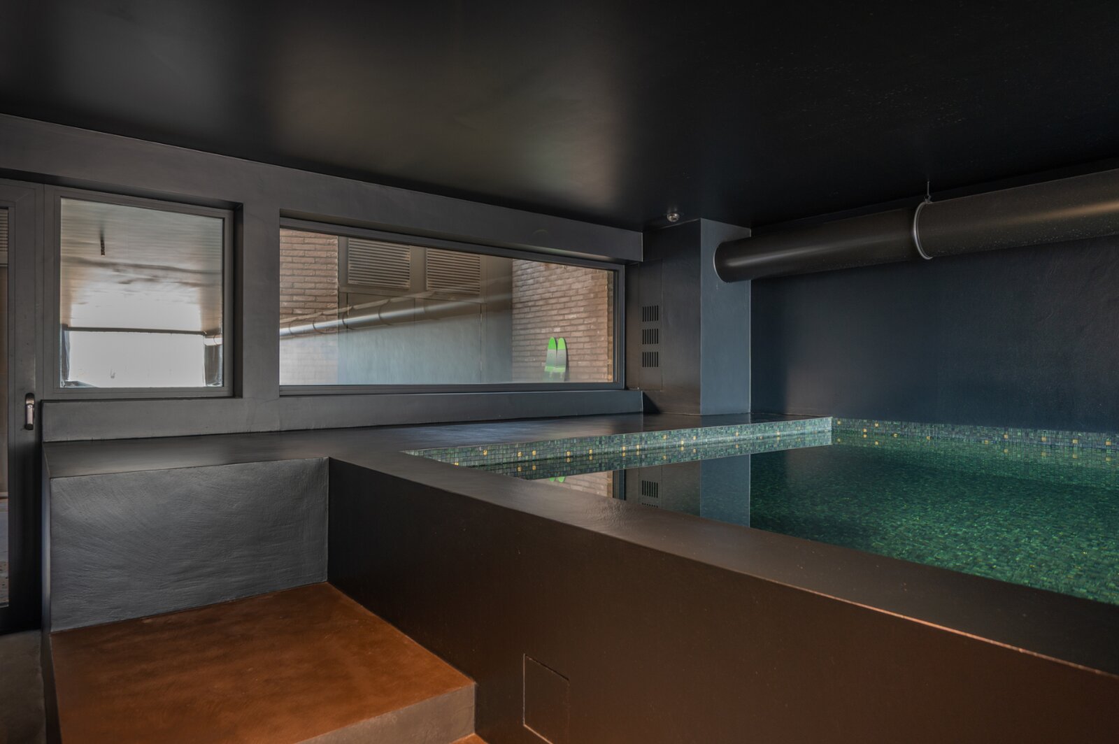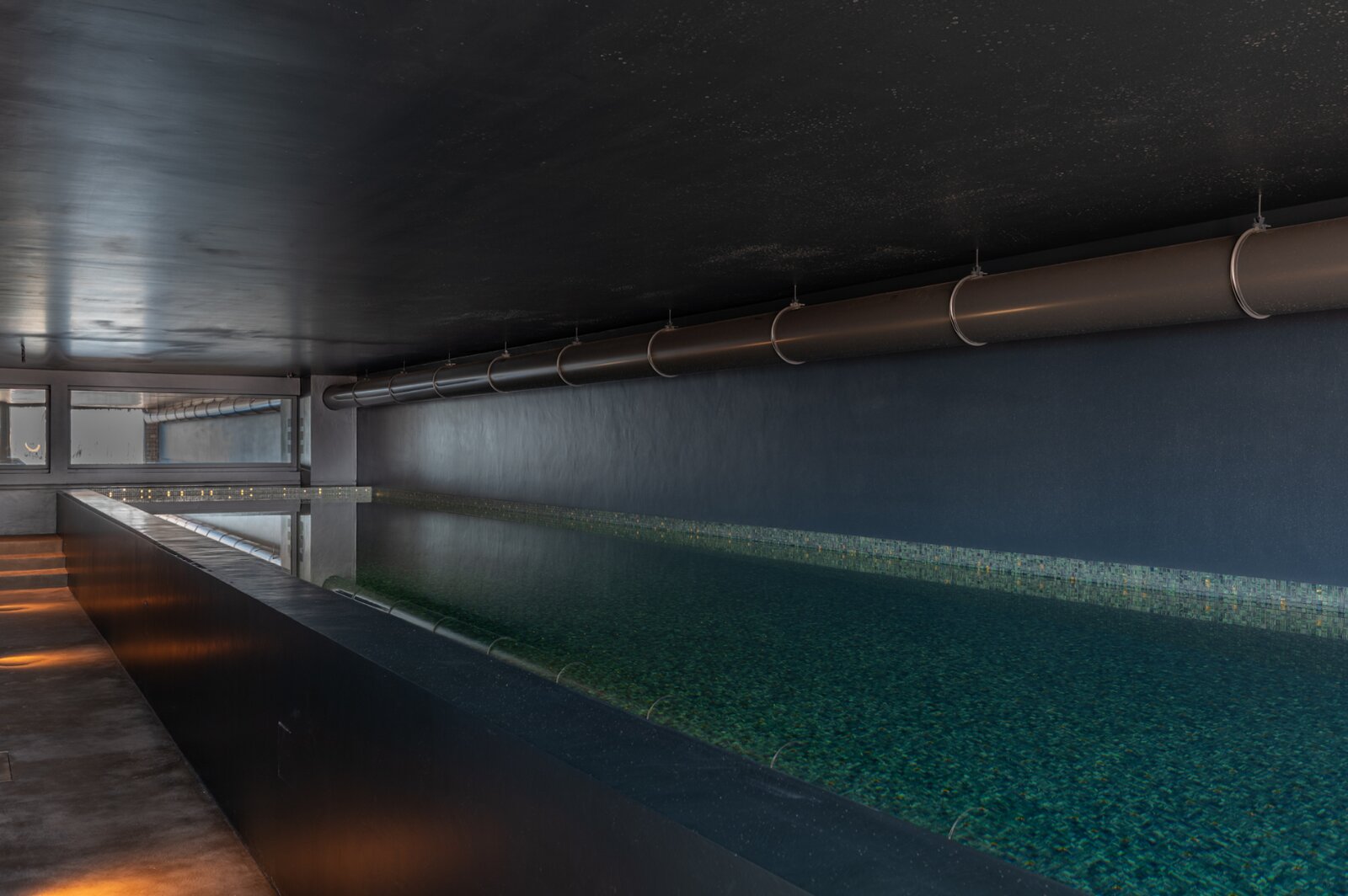 Daarbovenop is er op de gelijkvloerse verdieping, rechtstreeks bereikbaar via de privélift, een ware wellness oase die behoort tot het mezzanine-appartement. Deze plek van rust omvat een prachtig indoor infinity zwembad met een lengte van 17m en met uitzicht op zee, een volledig uitgeruste fitnessruimte en een sauna.