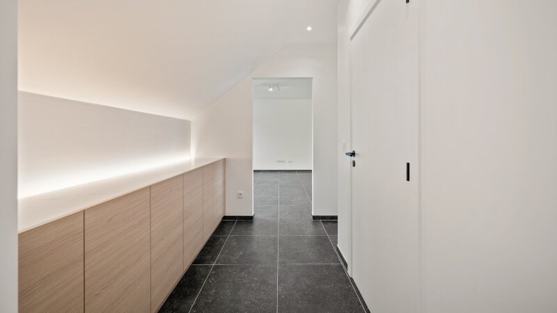 Het penthouse is zeer luxueus afgewerkt met hoogwaardige materialen is helemaal instapklaar en geschilderd en reeds voorzien van verlichting.