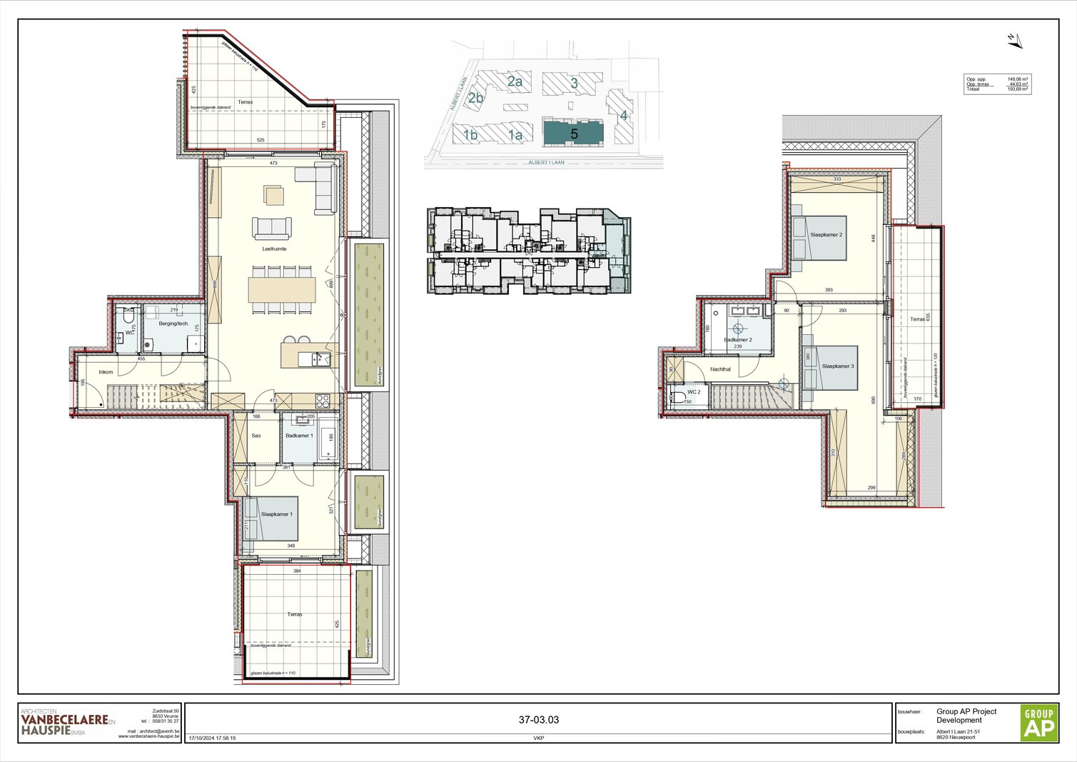 - op de vierde verdieping: nachthal, slaapkamer 2, badkamer 2 met dubbele wastafel in meubel en keuze tussen ligbad, inloopdouche of hoekdouche, apart toilet, slaapkamer 3 met dressing en terras.