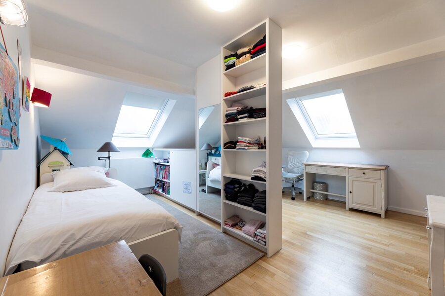 In een kleine, zeer rustige omheinde wijk, dicht bij alle voorzieningen van Fort Jaco, zeer aantrekkelijke penthouse flat (+/- 295 m²) + mooie terrassen (30 en 10 m²) in een kleine mede-eigendom gebouwd in 1988 op de 2e en 3e verdieping. Privé tuin naast het gebouw (125 m²). Mooie, lichte ontvangstruimten, bureau, volledig ingerichte keuken, 3 slaapkamers, 3 badkamers. 2 kelders en garage. PEB D