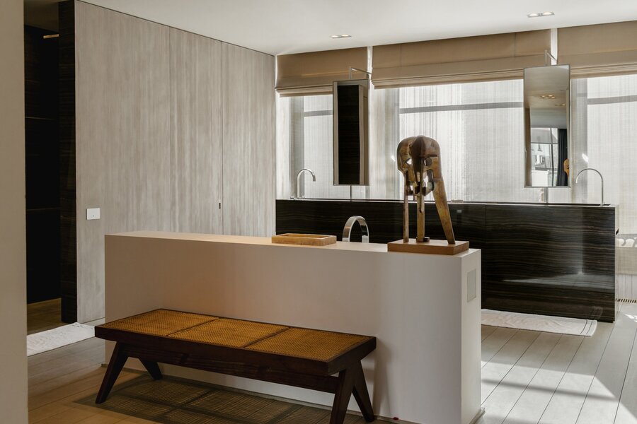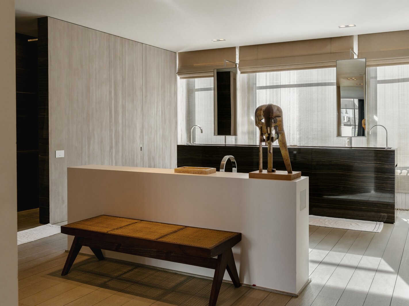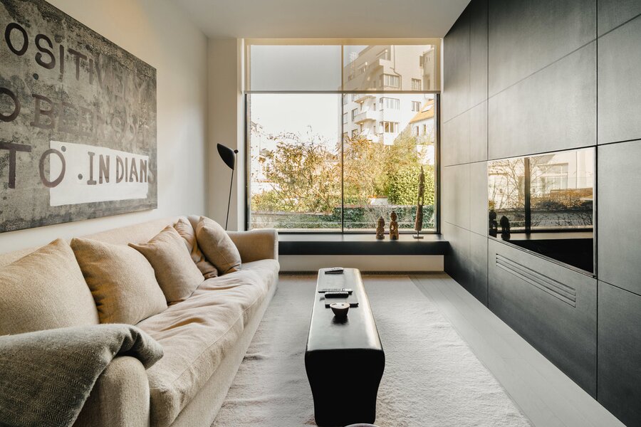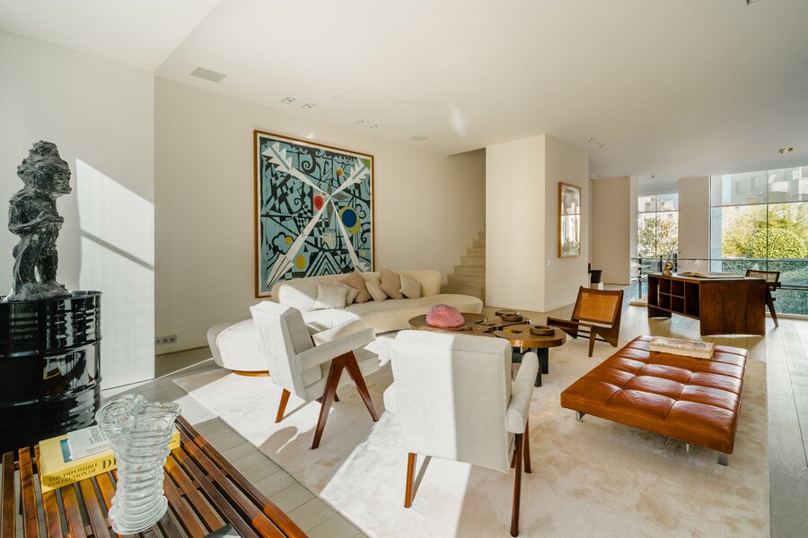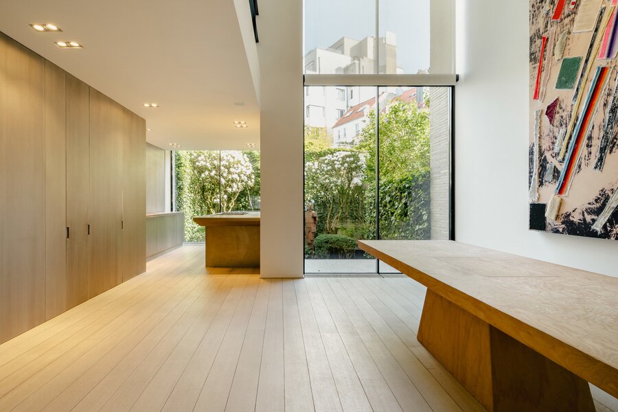 Dit herenhuis, ideaal gelegen tussen de Louizalaan en de Elsene vijvers, met zijn eclectische voorgevel in Art Nouveau-stijl, ontworpen door architect Léon Delune in 1893, werd in 2015 volledig heringericht in een hedendaagse stijl door Olivier Dwek.