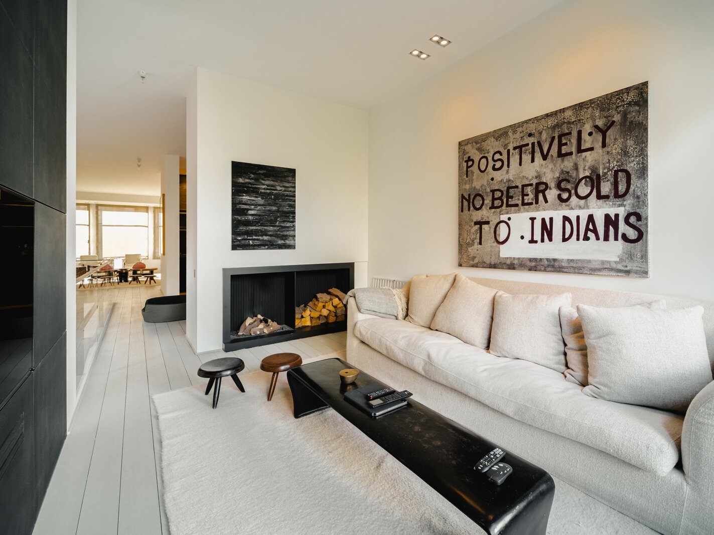 De begane grond bestaat uit een inkomhal met vestiaire die leidt naar een leefruimte bestaande uit een eetkamer en een volledig uitgeruste keuken die via een groot raam uitgeeft op een aangelegde tuin met een vijverpartij ontworpen door Vaxelaire & Deckers. De eerste verdieping biedt aantrekkelijke ontvangstruimten met open haard en een intiemere zitkamer met gascassette. Het slaapgedeelte op twee verdiepingen bestaat uit een master suite met een studeerkamer, slaapkamer en aangrenzende badkamer, terwijl de bovenste verdieping drie slaapkamers heeft met aangrenzende bad-/doucheruimtes.
