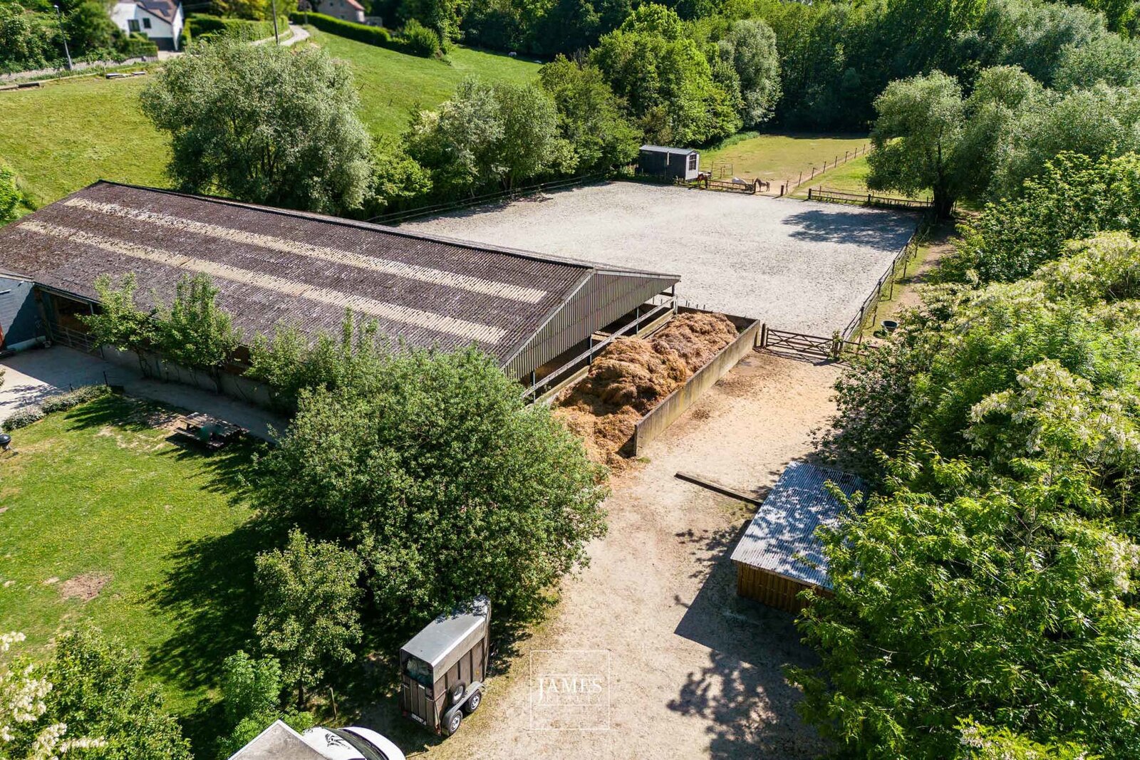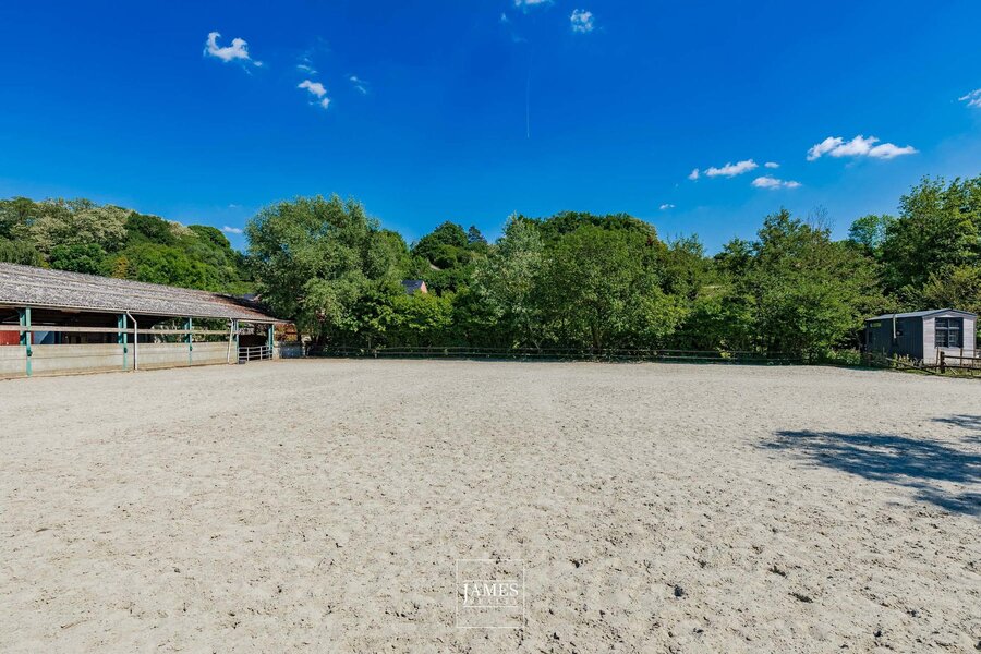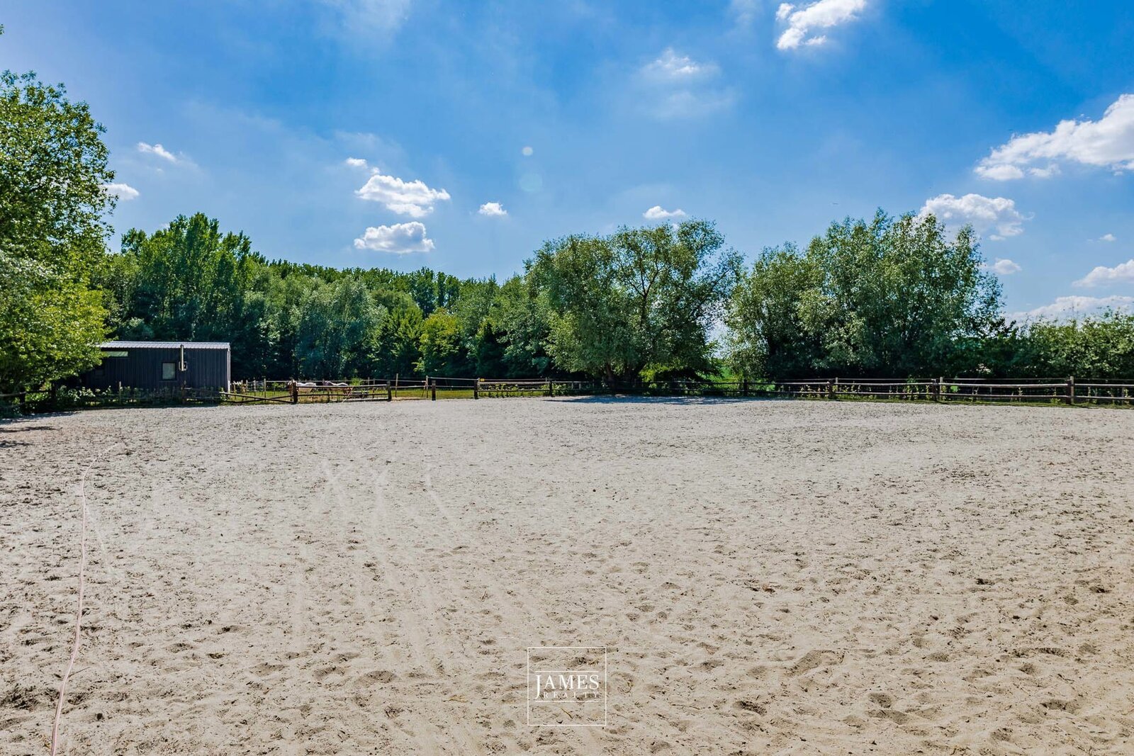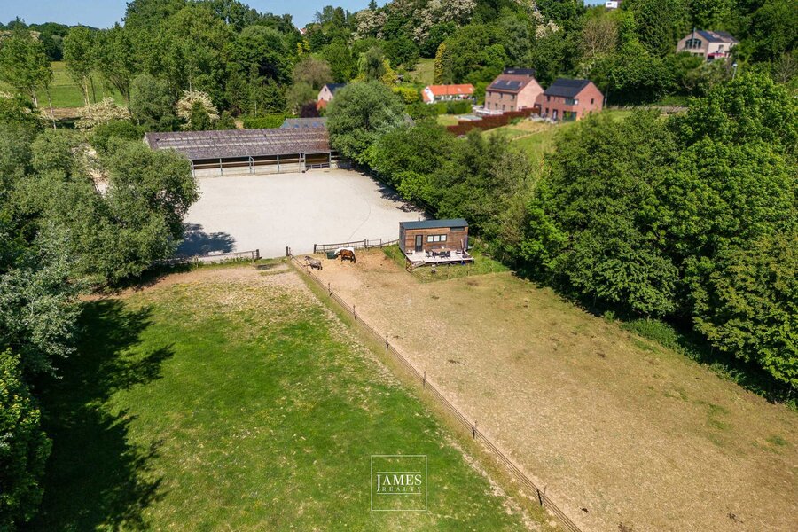 Dit prachtige ruiterhuis ligt in een weelderig groene omgeving en zal zowel amateurs als professionals aanspreken. Het biedt een complete infrastructuur op 1,4 hectare, met :