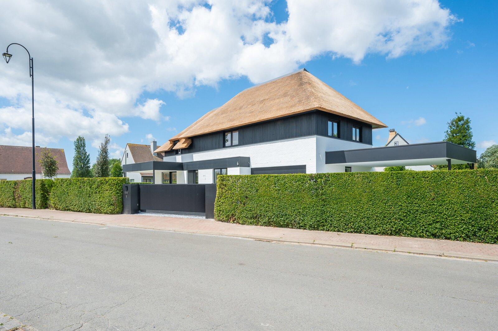 De prachtig aangelegde tuin is volledig omheind en voorzien van een automatische schuifpoort. De ruime oprit leidt naar een carport voor twee wagens. Het verwarmde zwembad in polystone is uitgerust met plage, inlooptrap, rolluik en eigen warmtepomp. Je geniet in alle seizoenen van het overdekte terras met sfeervolle verlichting.