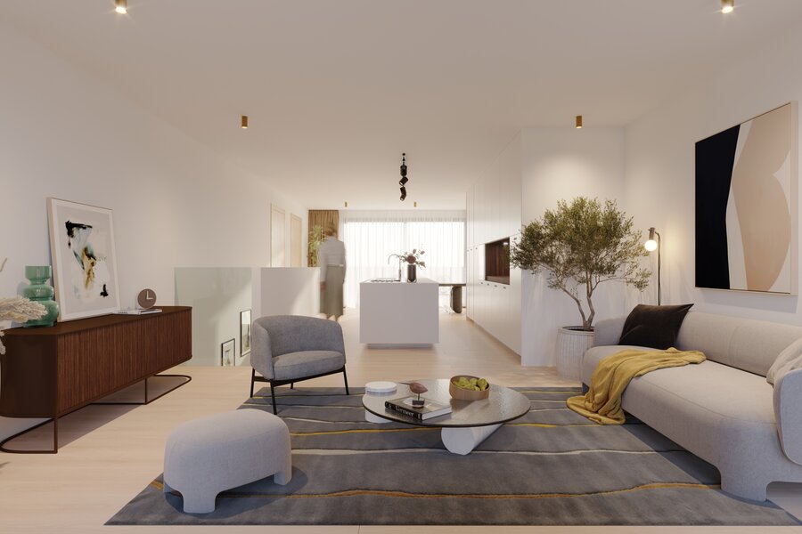 Deze duplex is doordacht ontworpen met een duidelijke scheiding tussen rust en leven.Op de derde verdieping bevinden zich drie ruime slaapkamers en twee badkamers, waardoor het slaapgedeelte rust en privacy garandeert. De bovenverdieping combineert een stijlvolle leefruimte met een open keuken en een terras waar u in alle rust buiten kunt vertoeven.