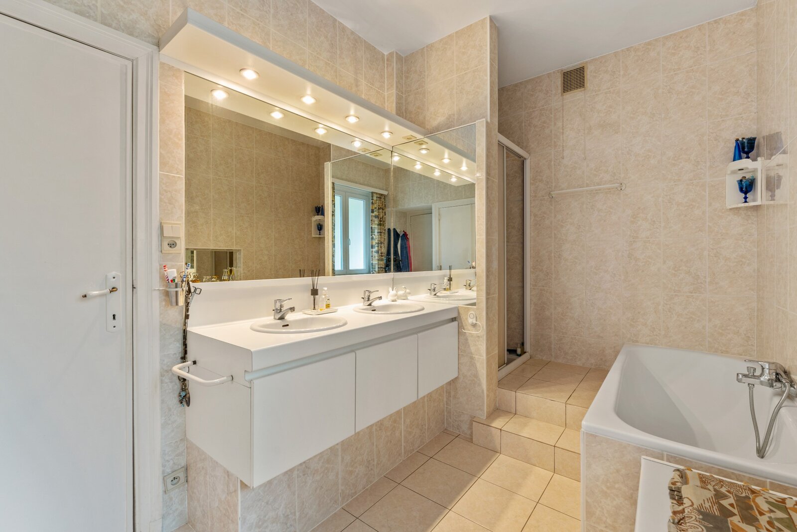 Op het gelijkvloers bevindt zich tevens de master bedroom (ca. 20 m²) met en suite badkamer, uitgerust met ligbad, ruime douche, dubbele wastafel en toilet.
