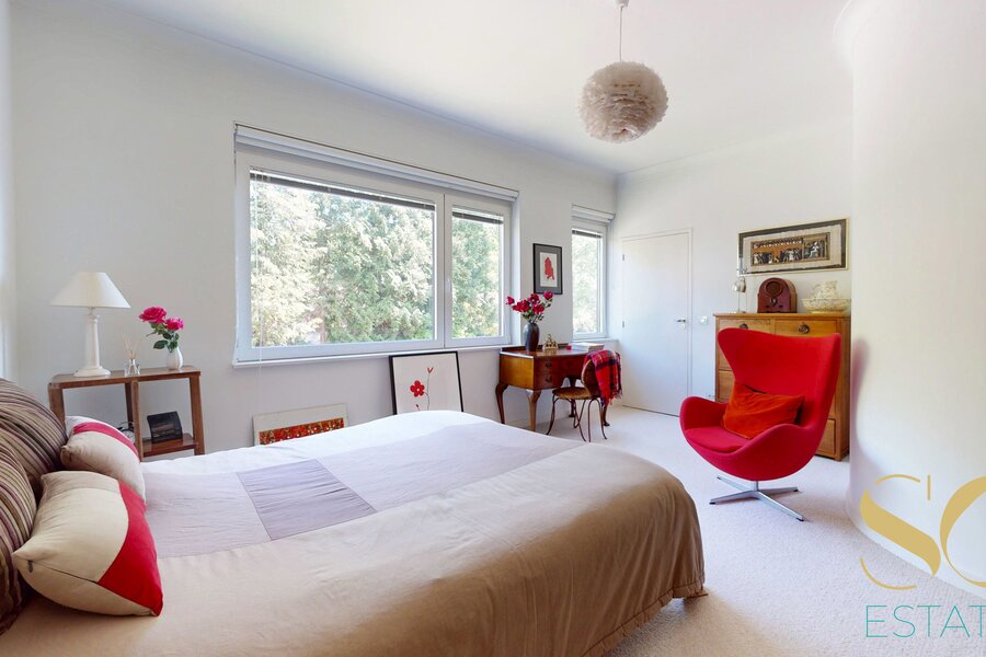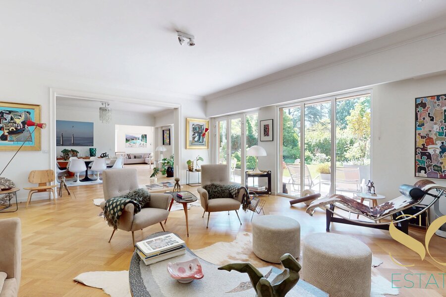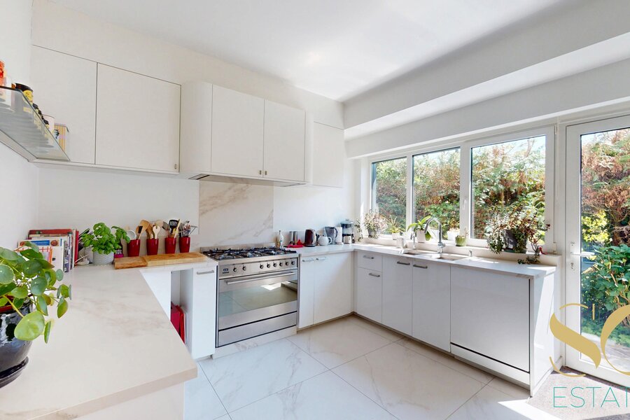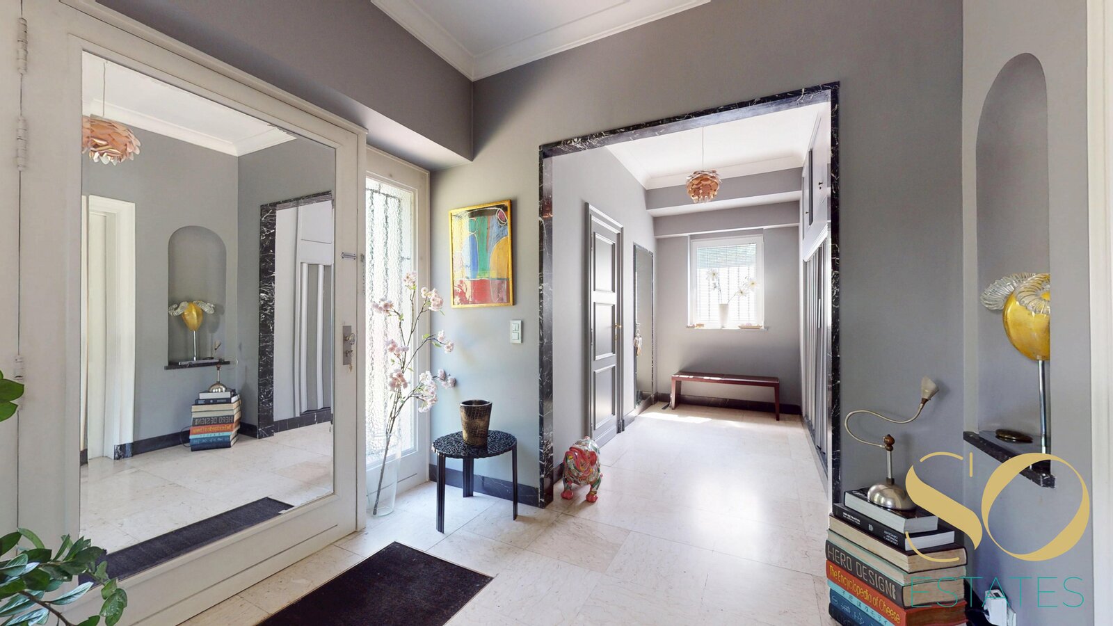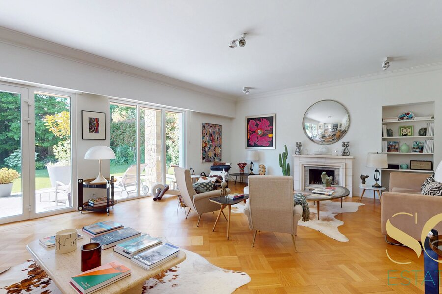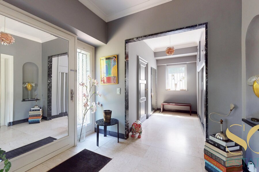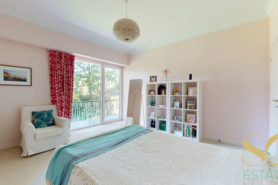 Prachtige architectenwoning van Stanislas Jasinski in Ukkel. In een van de meest begeerde en groene wijken van Ukkel ligt deze uitzonderlijke viergevelwoning, ontworpen door Stanislas Jasinski, een toonaangevend figuur binnen het Belgisch modernisme. De woning werd in 1958 gebouwd in opdracht van bouwmagnaat Jacques Delens en weerspiegelt de typische strakke lijnen en doordachte volumes van Jasinski’s stijl. Op een mooi georiënteerd perceel van 1.150 m² biedt de woning een bewoonbare oppervlakte van ± 372 m² verdeeld over twee verdiepingen. Het gelijkvloers omvat ruime en vloeiend verbonden leefruimtes: een dubbele woonkamer met veel lichtinval, twee eetkamers, een gezinskeuken, een bureau en brede gangen. Op de verdieping: vijf royale slaapkamers waaronder een master suite met dressing, twee badkamers en veel opbergruimte. Een zuidgericht balkon van 18 m² verlengt de achterste kamers op elegante wijze. Een dubbele garage met een laadpunt voor elektrische wagens, kelder en extra bergingen vervolledigen het geheel. De woning werd in 2015 gerenoveerd waarbij hedendaags comfort en originele elementen harmonieus werden gecombineerd. Een zeldzaam aanbod voor liefhebbers van karaktervolle architectuur of gezinnen op zoek naar ruimte en kwaliteit in Brussel. Zal u zeker bekoren met zijn prachtige look en uitstekende ligging! Te bezoeken!