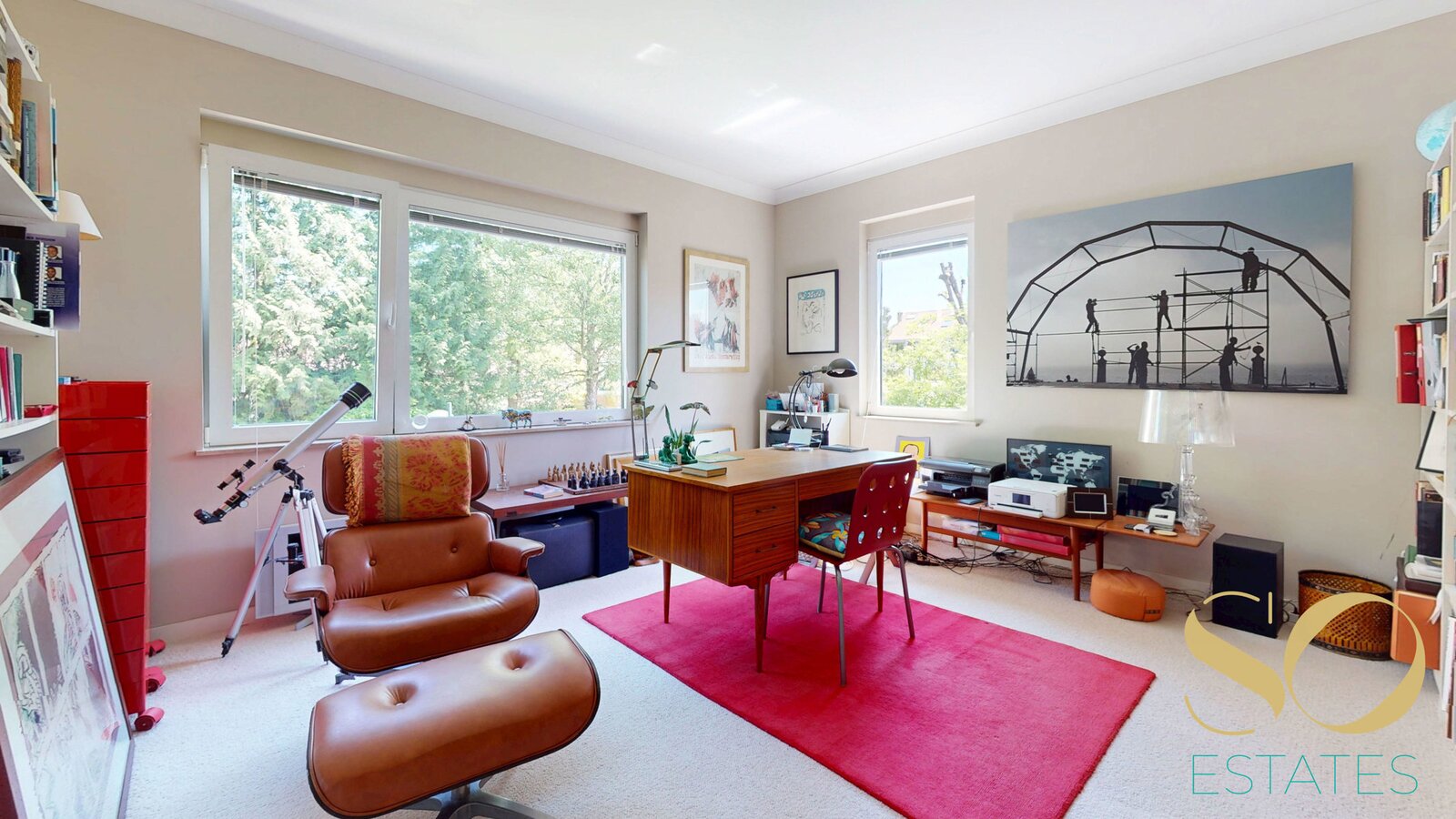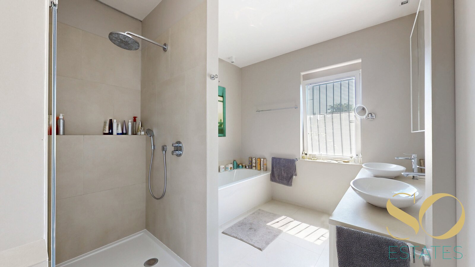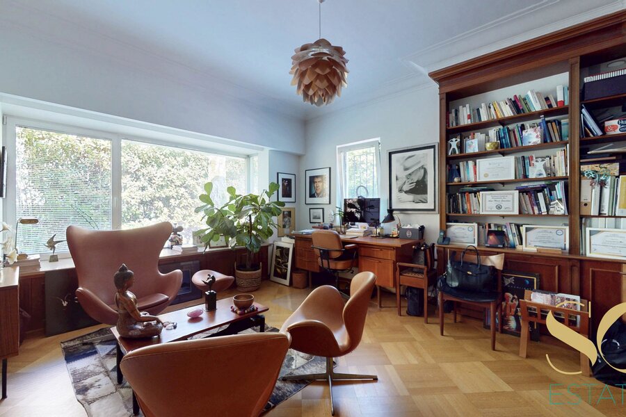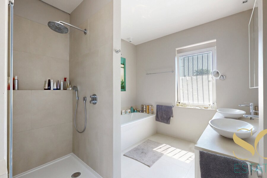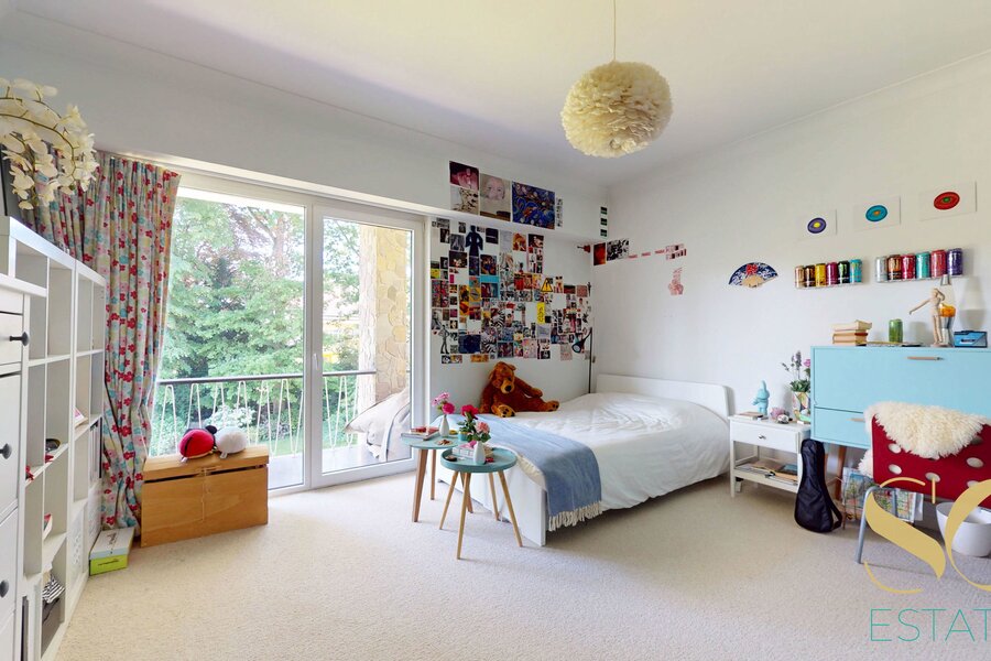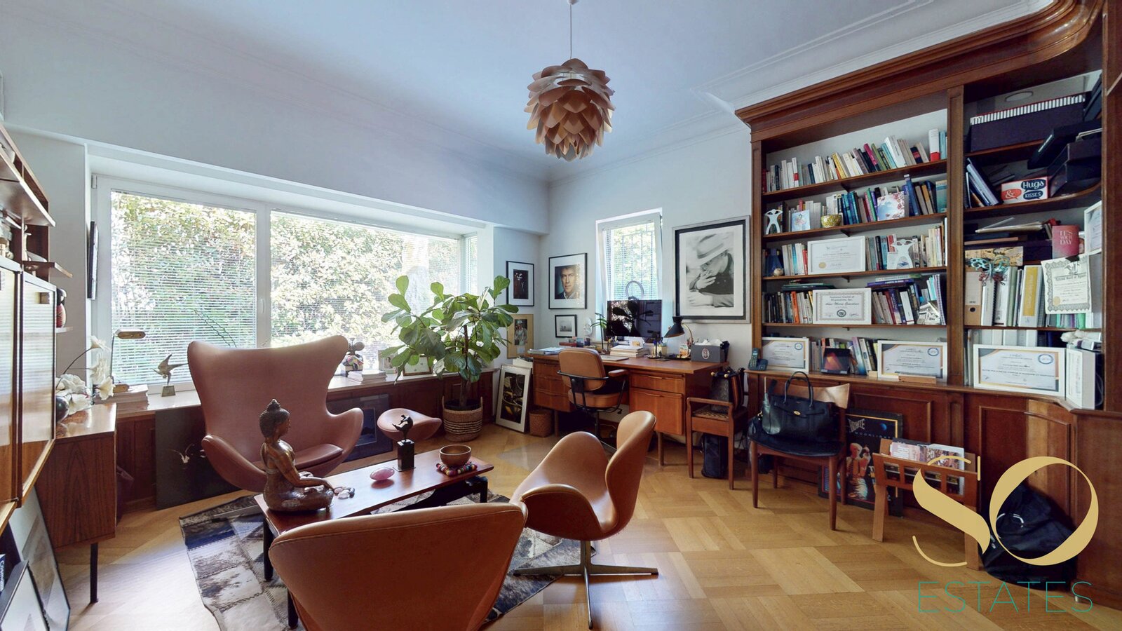 Prachtige architectenwoning van Stanislas Jasinski in Ukkel. In een van de meest begeerde en groene wijken van Ukkel ligt deze uitzonderlijke viergevelwoning, ontworpen door Stanislas Jasinski, een toonaangevend figuur binnen het Belgisch modernisme. De woning werd in 1958 gebouwd in opdracht van bouwmagnaat Jacques Delens en weerspiegelt de typische strakke lijnen en doordachte volumes van Jasinski’s stijl. Op een mooi georiënteerd perceel van 1.150 m² biedt de woning een bewoonbare oppervlakte van ± 372 m² verdeeld over twee verdiepingen. Het gelijkvloers omvat ruime en vloeiend verbonden leefruimtes: een dubbele woonkamer met veel lichtinval, twee eetkamers, een gezinskeuken, een bureau en brede gangen. Op de verdieping: vijf royale slaapkamers waaronder een master suite met dressing, twee badkamers en veel opbergruimte. Een zuidgericht balkon van 18 m² verlengt de achterste kamers op elegante wijze. Een dubbele garage met een laadpunt voor elektrische wagens, kelder en extra bergingen vervolledigen het geheel. De woning werd in 2015 gerenoveerd waarbij hedendaags comfort en originele elementen harmonieus werden gecombineerd. Een zeldzaam aanbod voor liefhebbers van karaktervolle architectuur of gezinnen op zoek naar ruimte en kwaliteit in Brussel. Zal u zeker bekoren met zijn prachtige look en uitstekende ligging! Te bezoeken!