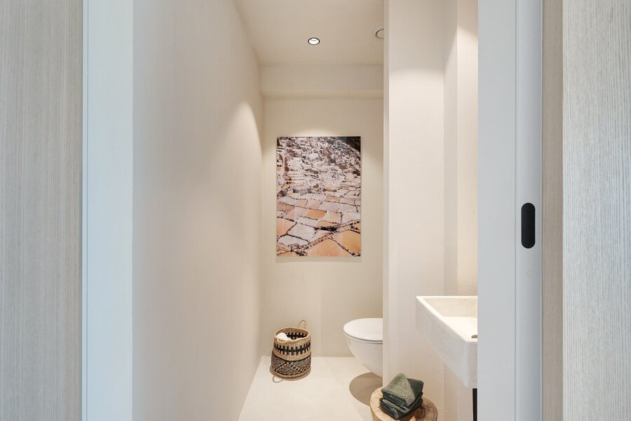 Een zonovergoten living die uitgeeft op het ruime terras, waardoor u kunt genieten van de zon en het prachtige uitzicht op de omgeving. Of u nu wilt ontspannen in de zon of dineren onder de sterren, dit terras biedt de perfecte setting voor elke gelegenheid.