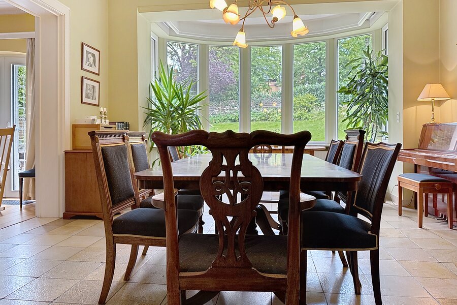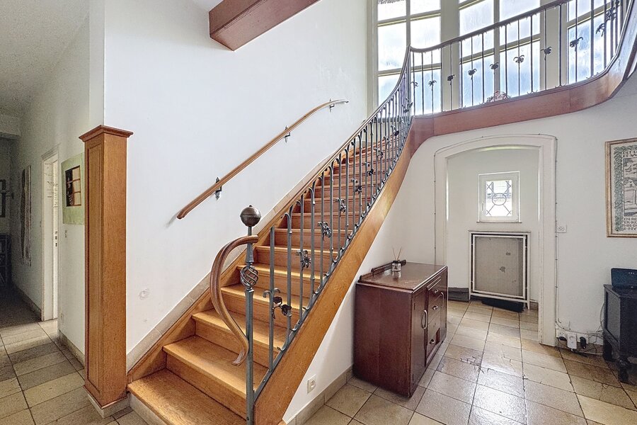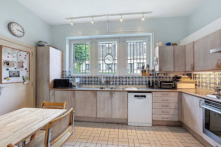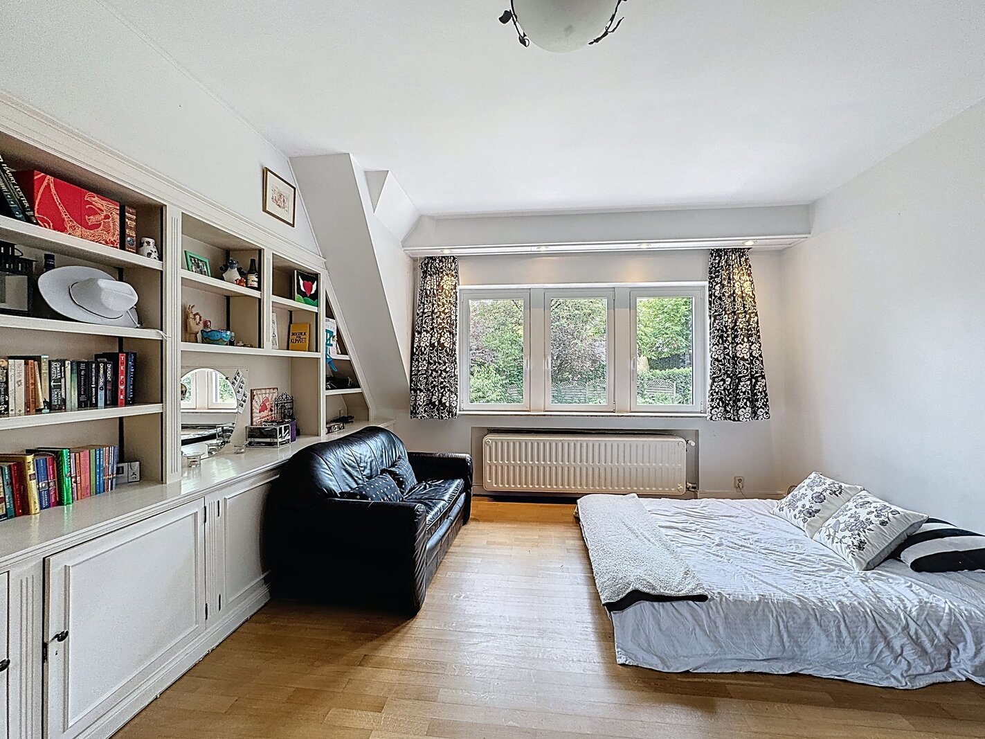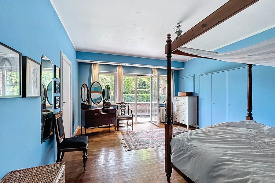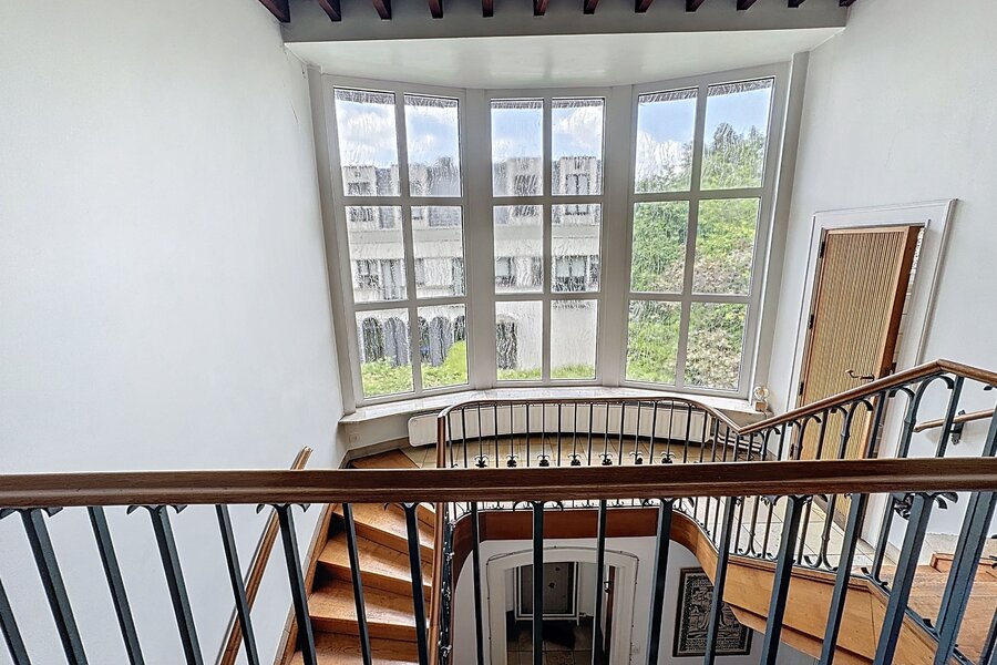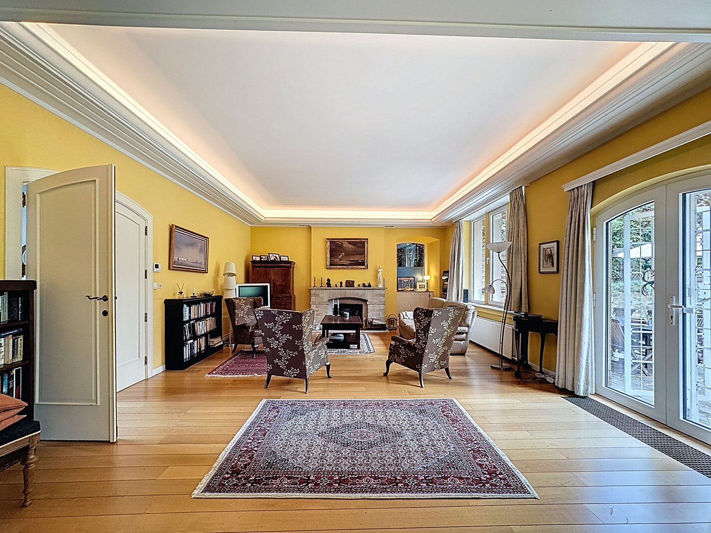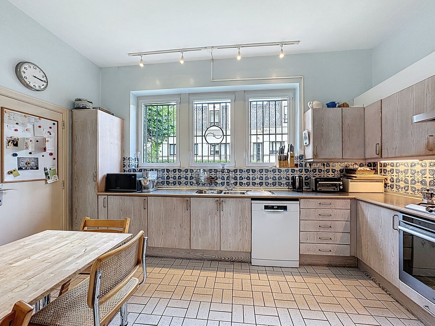 Deze karaktervolle woning ligt in het hart van een lommerrijke wijk in Ukkel en heeft een ritmische gevel van 15 meter. De villa heeft een totale oppervlakte van ongeveer 585 m² en ongeveer 335 m² woonruimte verdeeld over twee verdiepingen en geeft uit op een elegante entreehal met een origineel trappenhuis dat de toon zet. De begane grond beschikt over een grote woonkamer met open haard, aangrenzende eetkamer, aparte familiekeuken met aparte bijkeuken, studeerkamer, gastenslaapkamer met eigen badkamer en apart toilet. Er is ook de mogelijkheid om een ruimte te creëren voor een vrij beroep, dat profiteert van een aparte ingang.