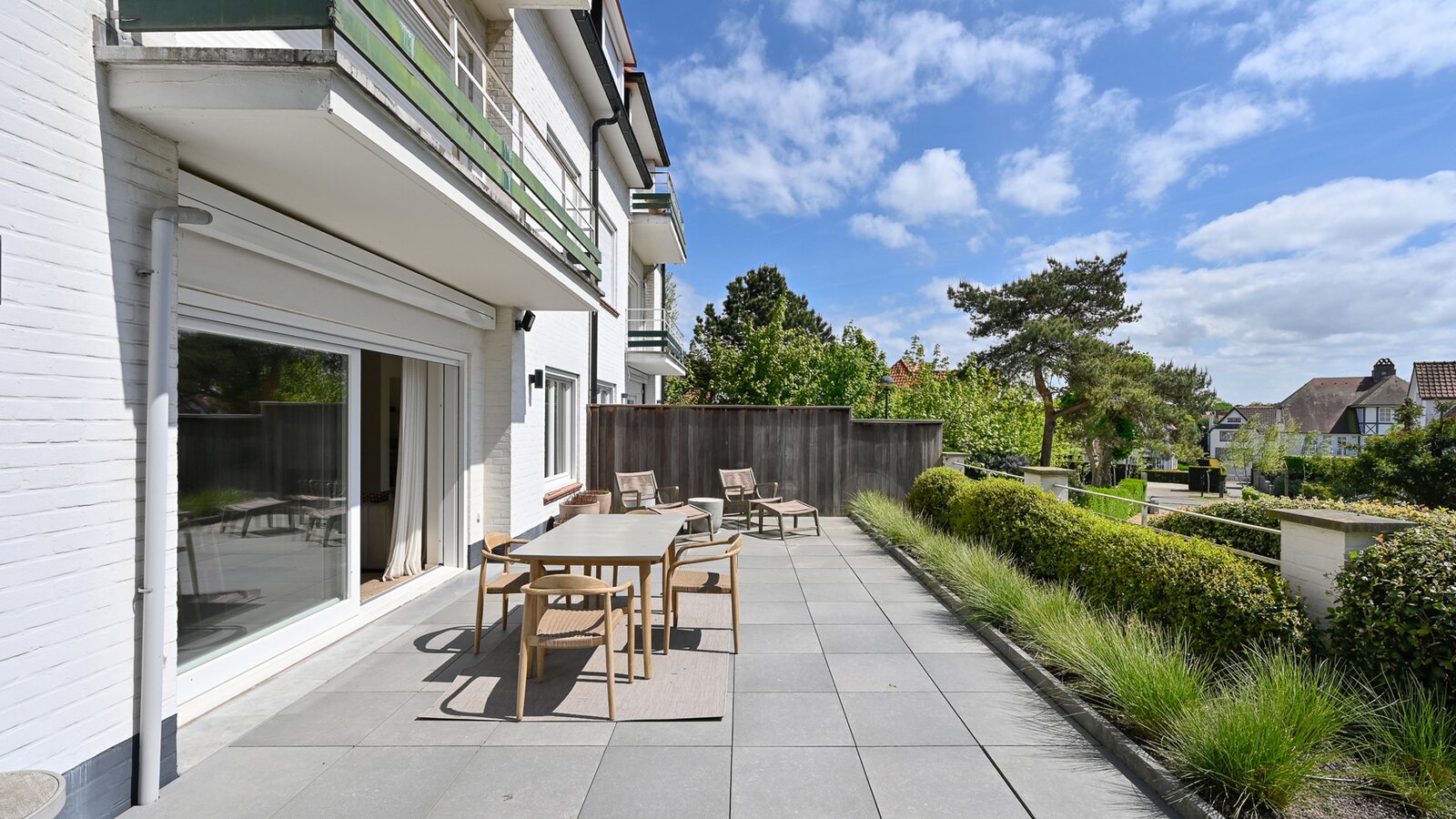 Luxueus tuinappartement met zuid-west oriëntatie in een standingvolle villaresidentie op enkele passen van het strand.