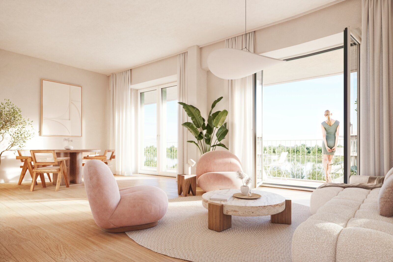 In het prestigieuze project Scheldetuin, ontworpen door Coussée-Goris-Huyghe architecten, woont u op een toplocatie aan de Schelde met zicht op het stijlvolle binnenpark. Dit energiezuinige appartement op de vierde verdieping combineert comfort, rust en bereikbaarheid.