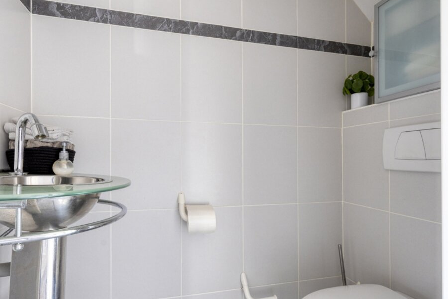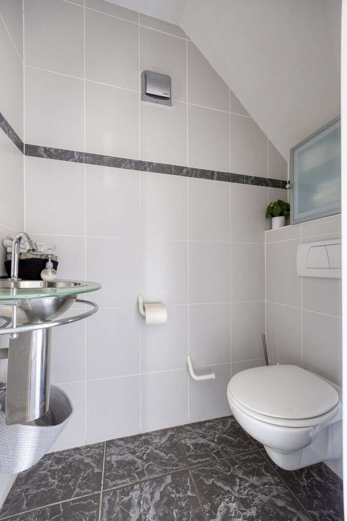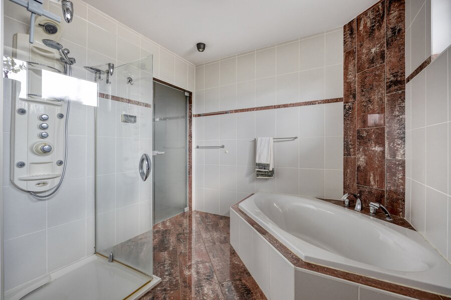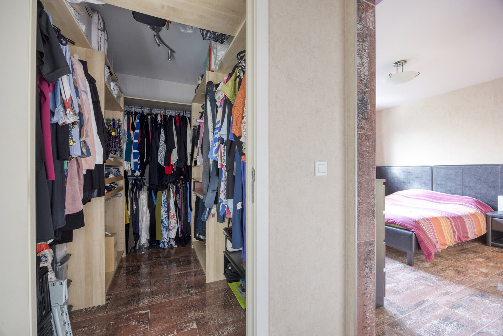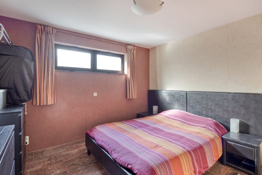 De inkomhal verwelkomt je met ingebouwde vestiaire en gastentoilet. Gelijkvloers bevindt zich een grote slaapkamer met dressing en eigen badkamer – ideaal voor wie alles op één niveau wil.