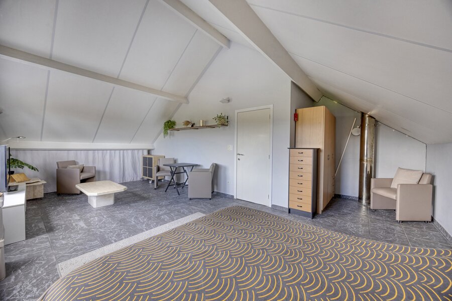 Op de verdieping zorgt de hoge nok voor een aangenaam, open gevoel.