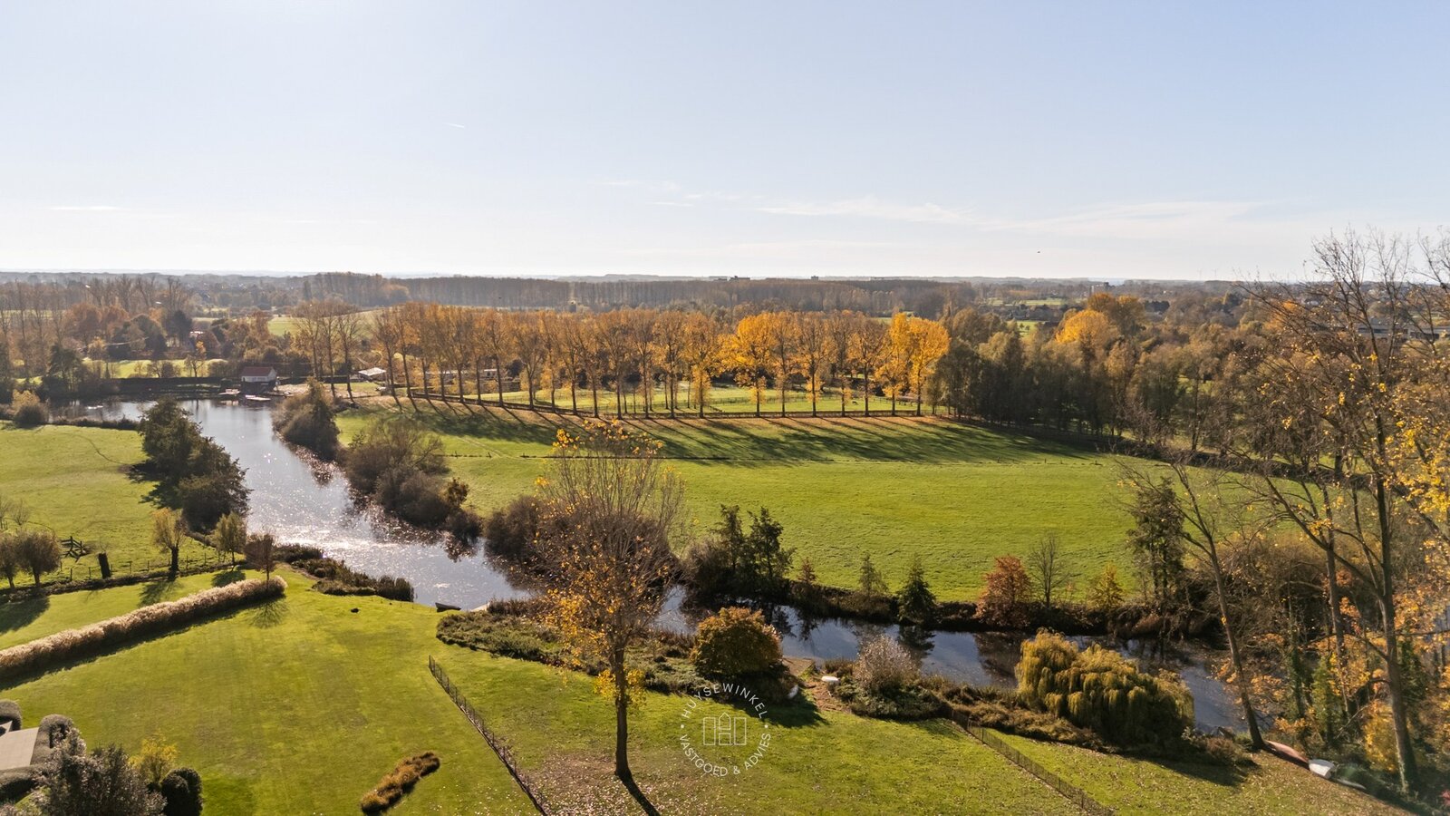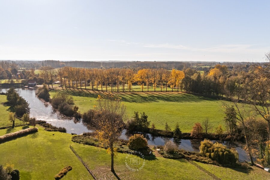 Deze villa is gelegen te Bachte-Maria-Leerne op enkele minuten van Deinze centrum, Sint-Martens-Latem, oprit E40 in Drongen. Dankzij de kleine oprijlaan, omgeven door groen, bevindt de woning zich iets verder van de straat en geniet deze op die manier van rust en privacy, mét zicht op een oude arm van de Leie.
