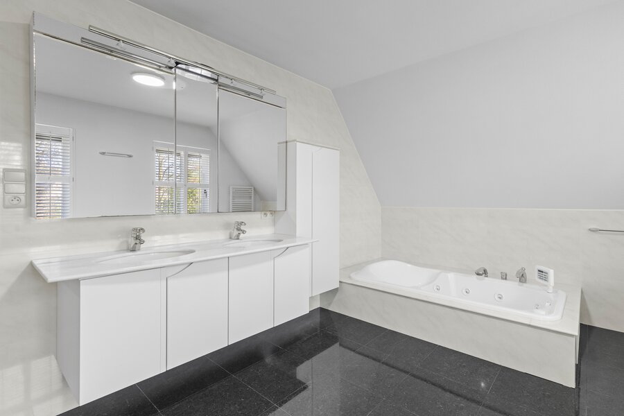 Verder beschikt de villa over een dubbele garage, ruime oprit, grote parking, buitenberging, wijnkelder en een opbergkelder.