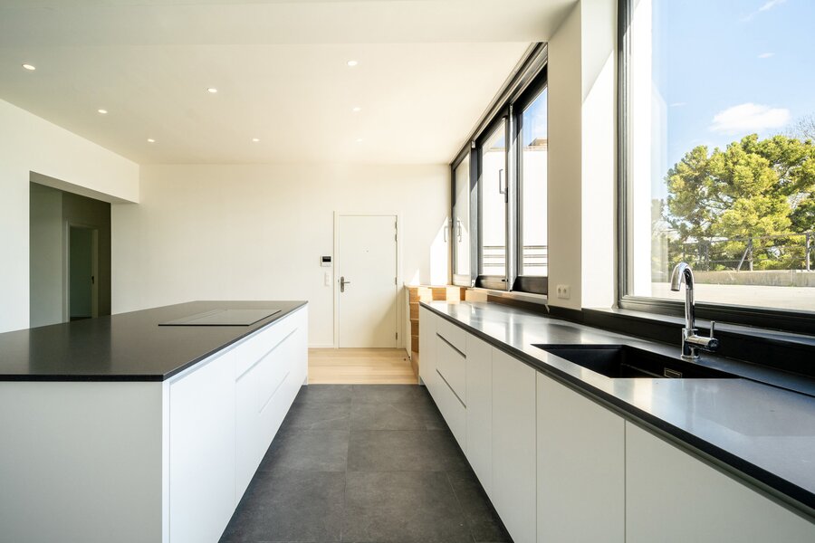 Het gerenoveerde appartement met eerste bezetting bevindt zich op de vierde verdieping, komt uit op een grote volledig uitgeruste keuken met centraal eiland en backoffice en leidt naar een terras van 66 m ². Achterzijde een woonkamer van 46 m ² met open uitzicht op de vegetatie en een kantoor. De benedenverdieping bedient de hoofdslaapkamer van 16 m ² met aparte kleedkamer, complete badkamer en een terras en twee andere slaapkamers van 10 en 12 m ² elk met een eigen doucheruimte. Een aparte wasruimte maakt de set compleet.