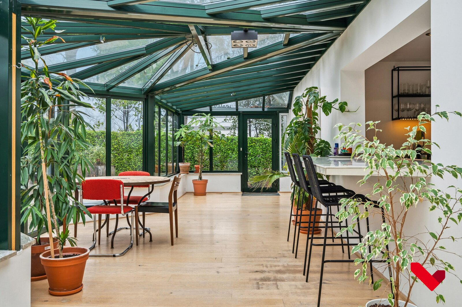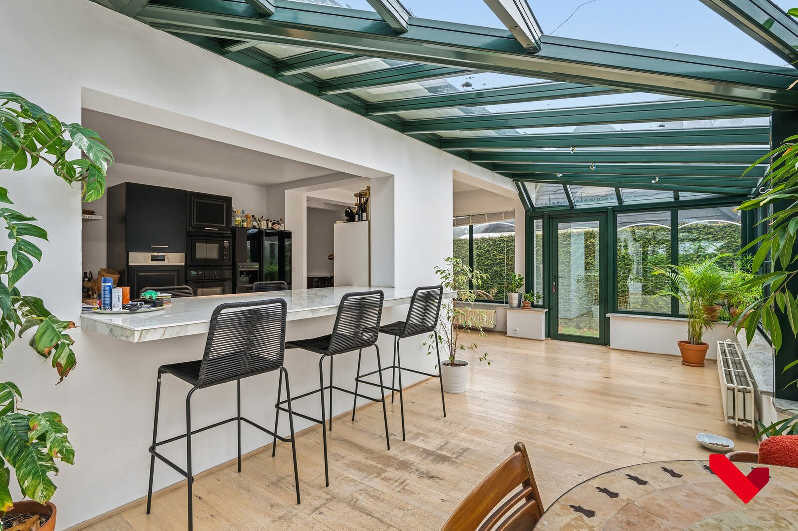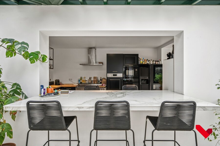 De open indeling, de elegant geïntegreerde veranda en de groene tuin rondom creëren een exclusieve woonbeleving waar licht, ruimte en comfort centraal staan.