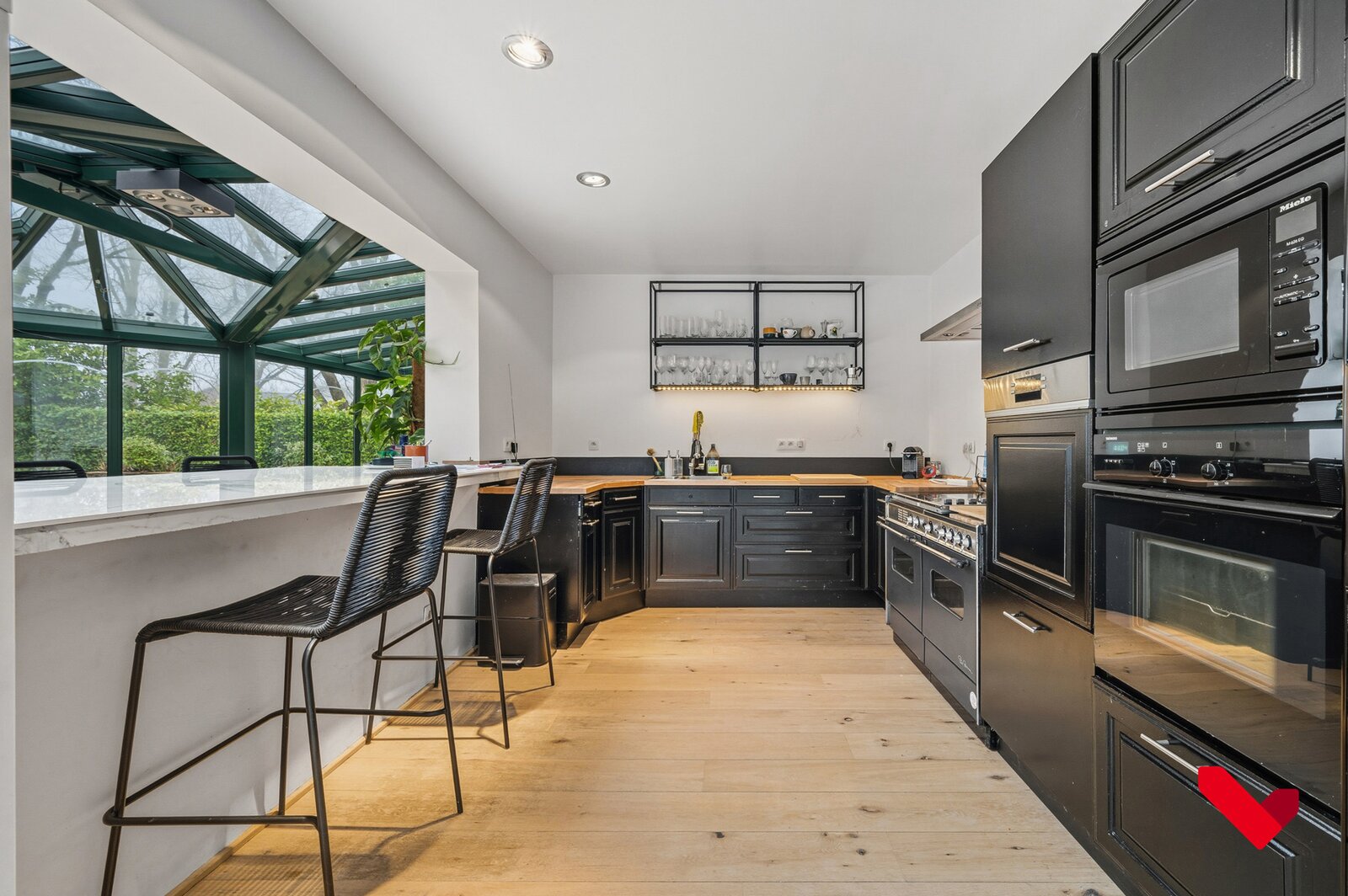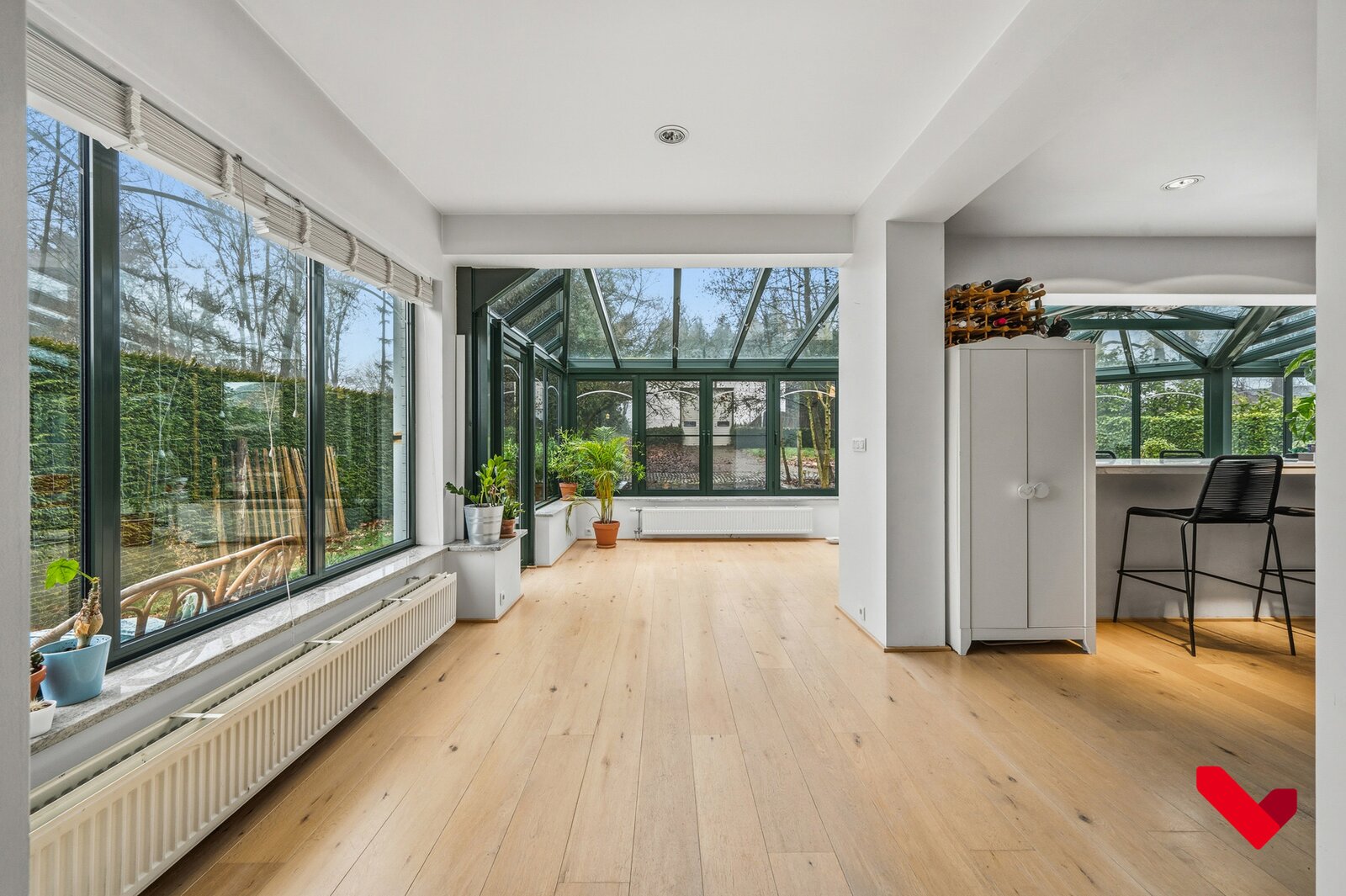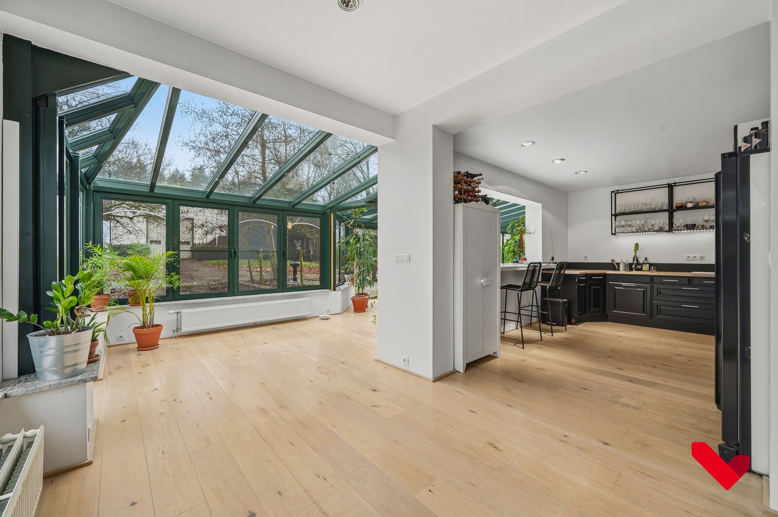 De open indeling, de elegant geïntegreerde veranda en de groene tuin rondom creëren een exclusieve woonbeleving waar licht, ruimte en comfort centraal staan.