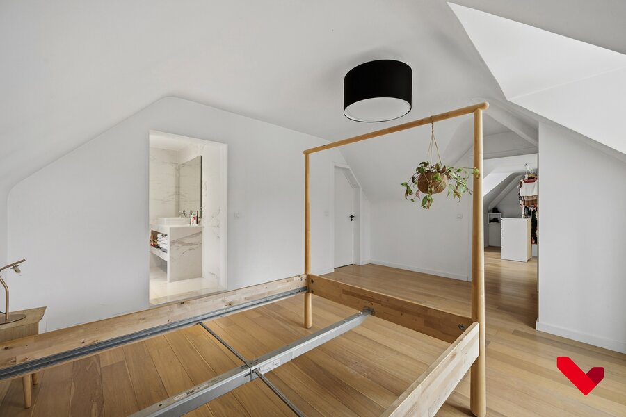 De villa biedt flexibele en hoogwaardige woonmogelijkheden met potentieel tot vier volwaardige slaapkamers. De master suite beschikt over een luxueuze ensuite badkamer en een royale dressing, die eenvoudig kan worden ingericht als extra slaapkamer. De kamer op het gelijkvloers kan ook ingericht worden als kabinet voor het uitoefenen van een zelfstandig beroep, iets waar de oprit en bijhorende staanplaats zich ook toe leent. Tot slot is de woning volledig onderkelderd en voorzien van een inpandige garage, wat bijdraagt aan het uitzonderlijke comfort en de praktische leefkwaliteit.
