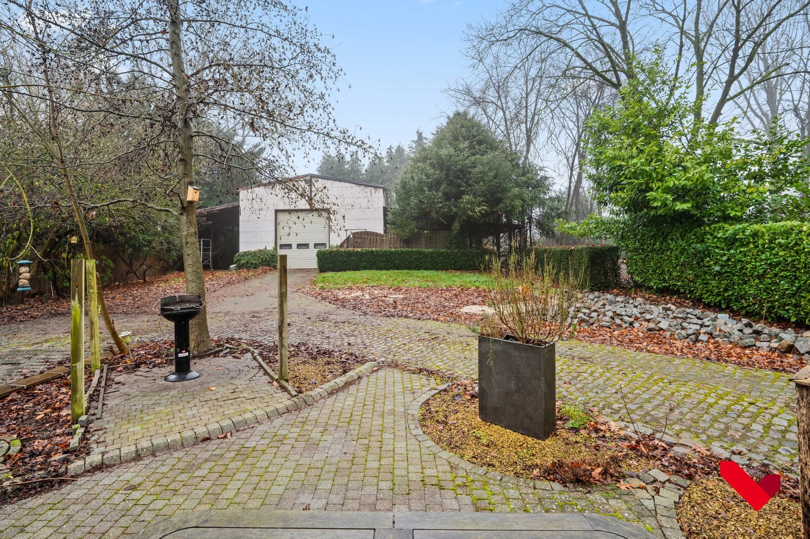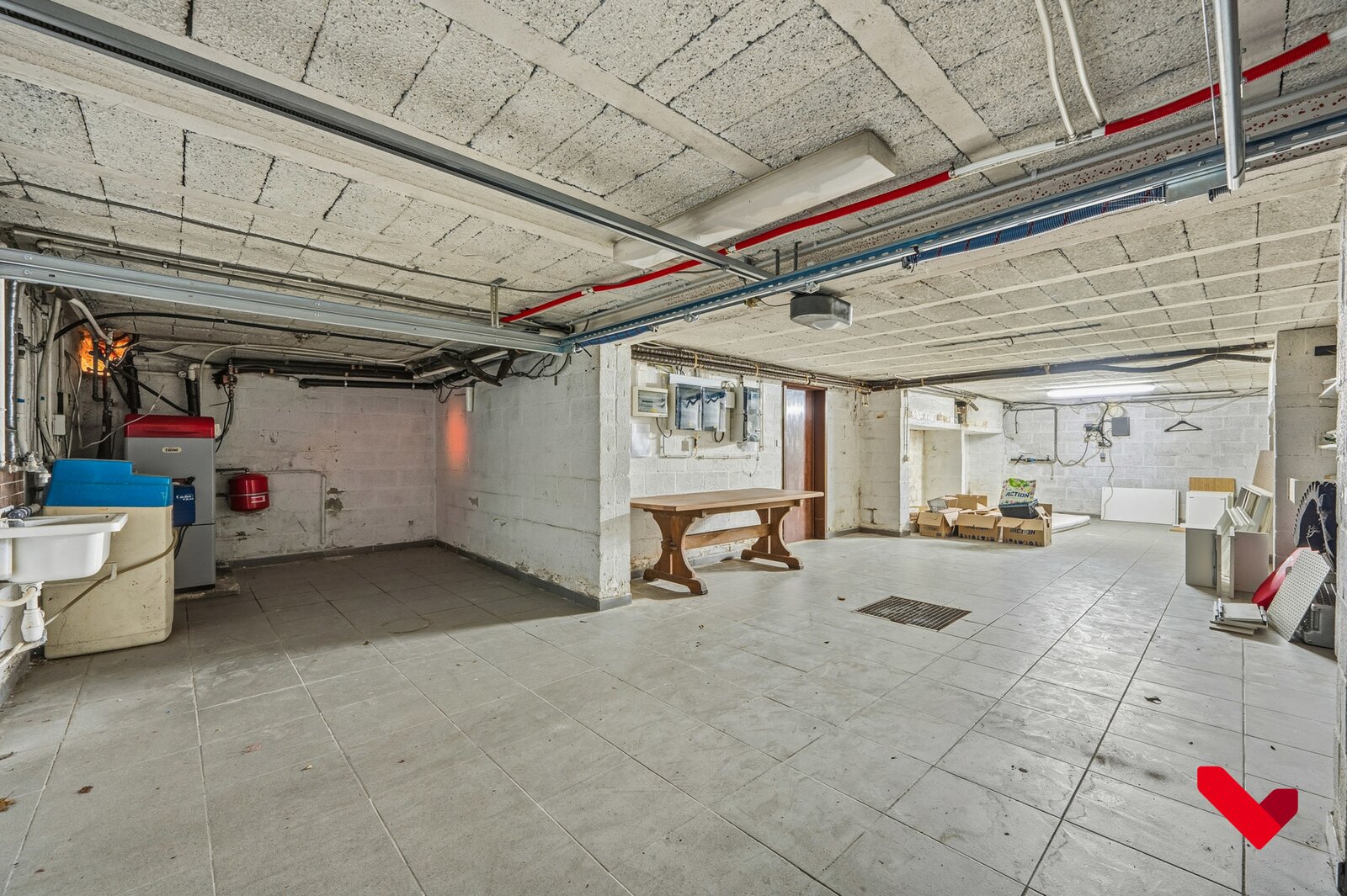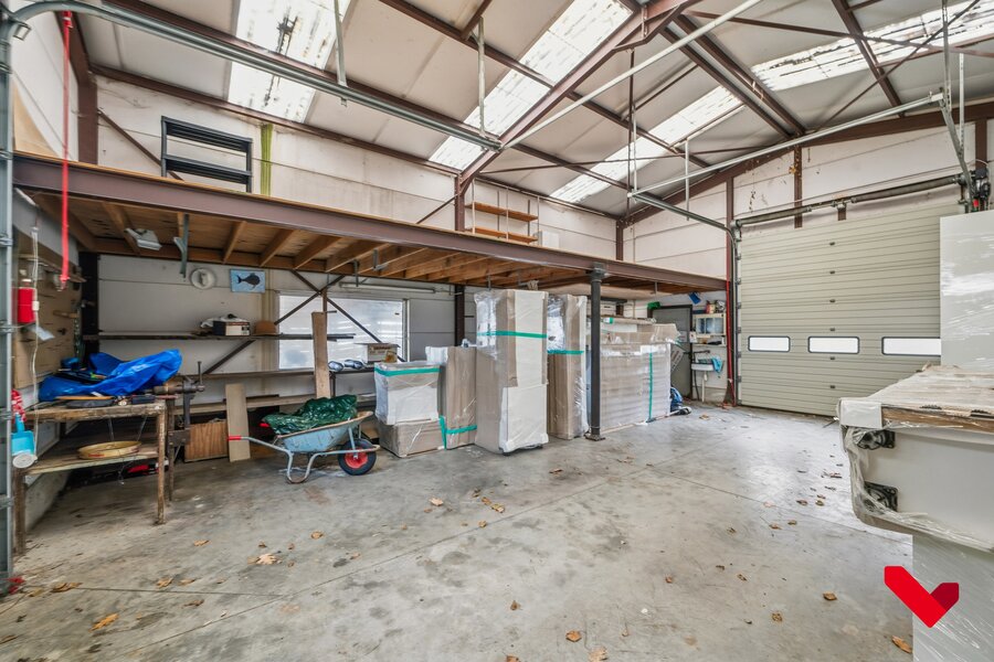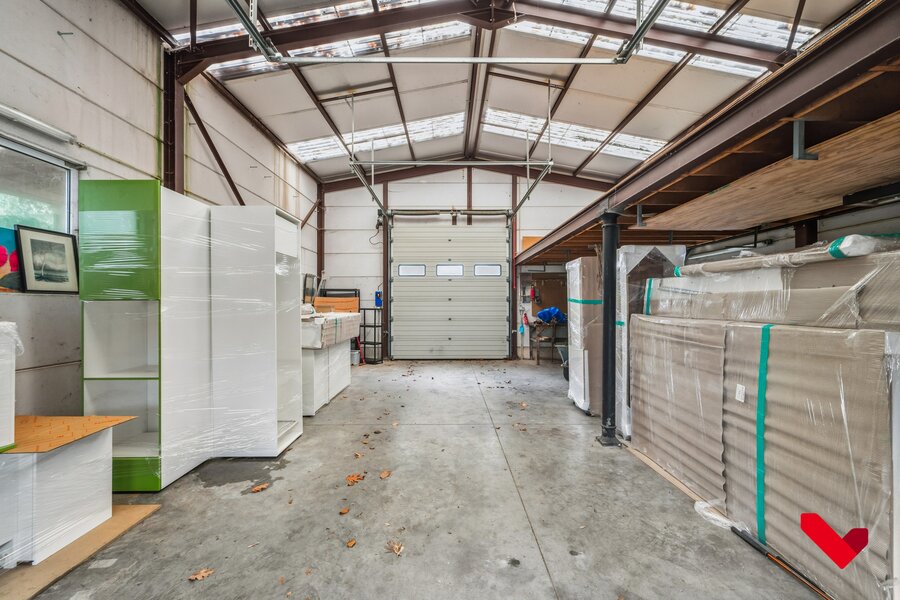 Als unieke meerwaarde beschikt het eigendom over een loods met dubbele garagepoort dat via afzonderlijke inrit achteraan makkelijk bereikbaar is. Deze infrastructuur creëert uitzonderlijke opportuniteiten voor opslag, atelier, logistieke ondersteuning of professionele exploitatie, los van het hoofdgebouw.