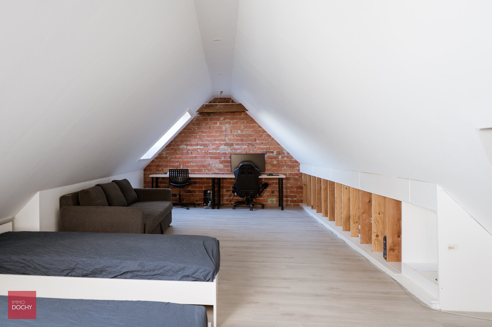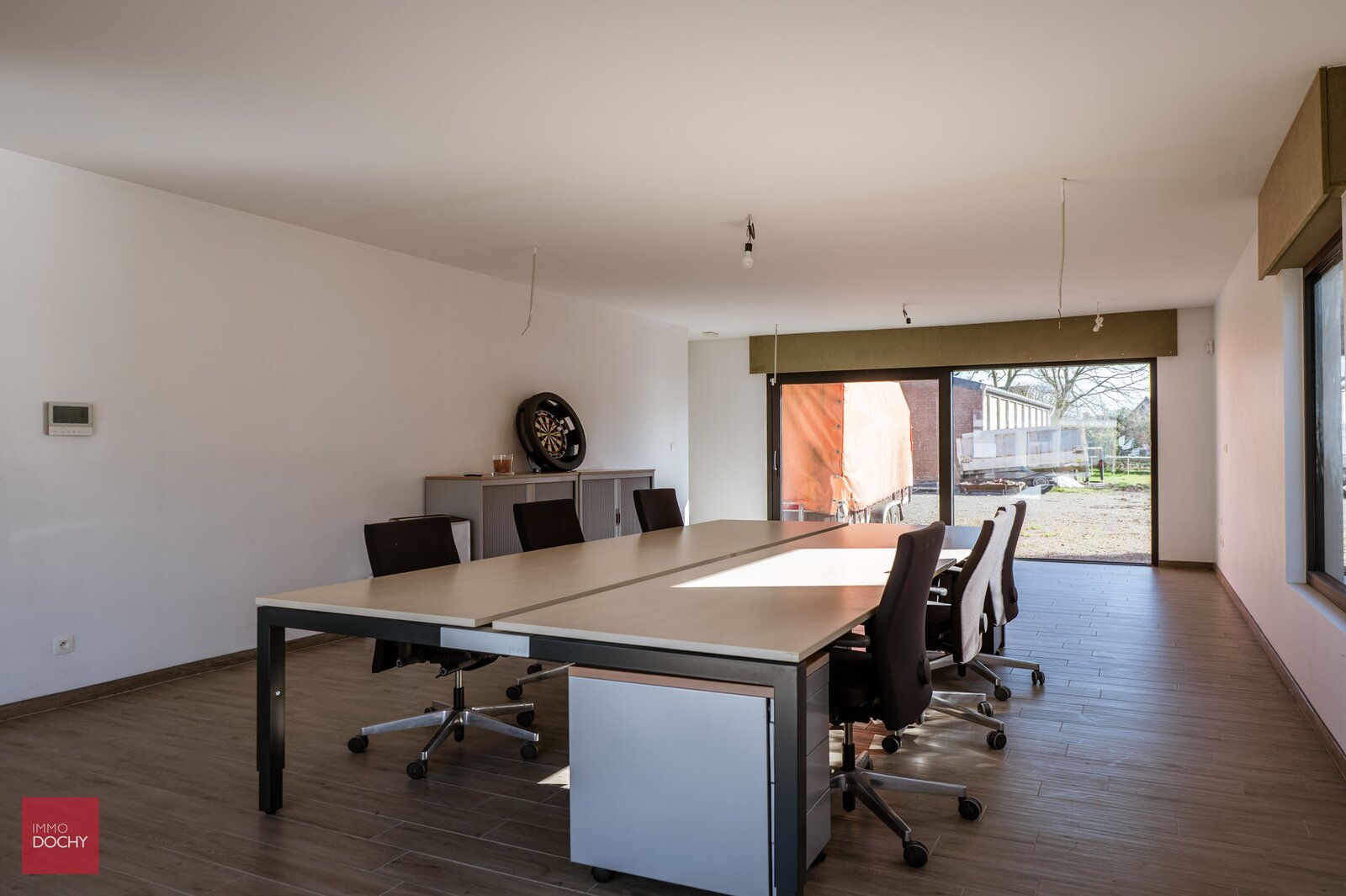 Vlotte verbindingen en nabij centrum. Ideaal geschikt ook voor samengestelde gezinnen of als kangoeroewoning. Villa bestaande uit een inkomhall, living (bureel), vergaderruimte, keuken, 2 slaapkamers (of burelen) en badkamer op gelijkvloers. Op de eerste verdieping nogmaals een lichtrijke woonkamer met keuken, 3 slaapkamers en badkamer. Er is een ruime volwaardige zolderkamer en 2 kelders. Magazijn 227m² met grote toegangspoort (Milieuvergunningklasse 3 mogelijk) . Parking vooraan en tuin achteraan. Nieuwe ramen, electriciteit, keuken, badkamer, nieuw dak met voldoende isolatie.