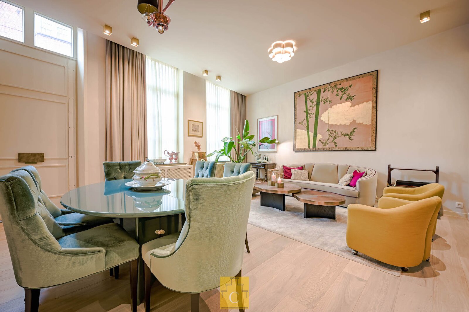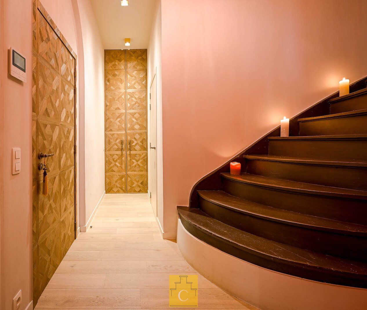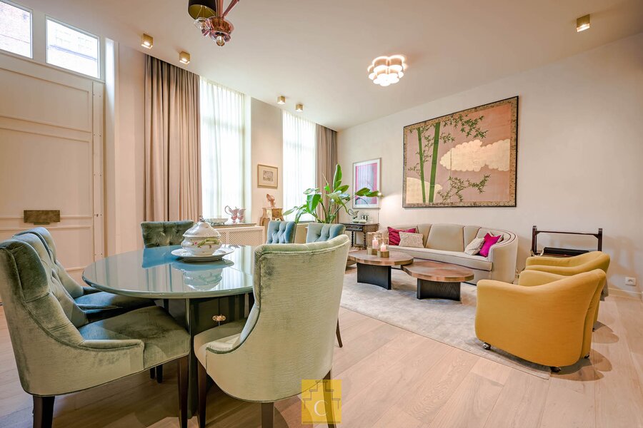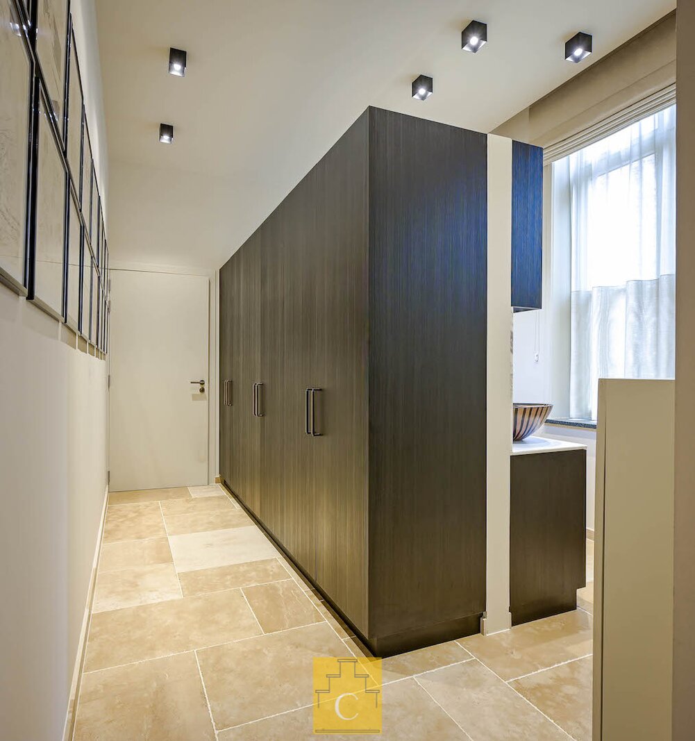 De afwerking is van een zeldzaam niveau. Hoogwaardige en duurzame materialen, warm parket, marmer, maatwerk in hout, en een verfijnd schilderwerk dat het geheel extra diepte geeft. Elk element werd zorgvuldig gekozen en perfect op elkaar afgestemd, wat resulteert in een interieur met karakter.