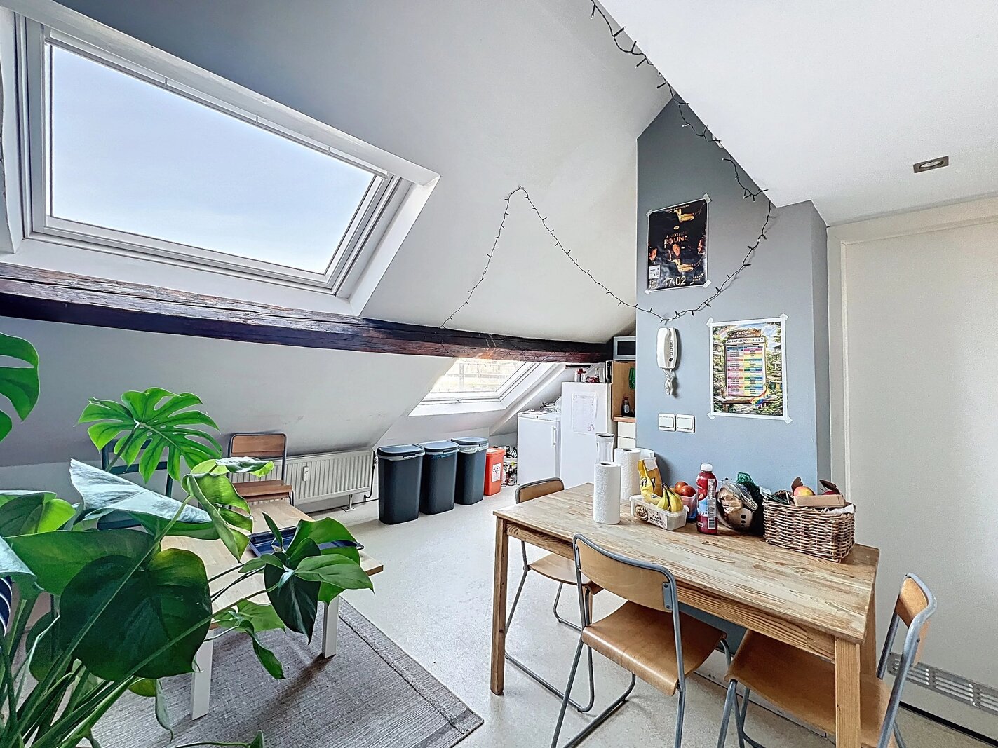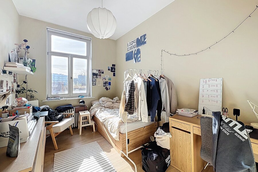 Op de 2e en 3e verdieping een omgekeerde duplex van +/- 83m2 (bron PEB) met drie slaapkamers, een badkamer met douche en op de bovenverdieping een woonkamer met keuken en twee slaapkamers met en-suite badkamer met douche. PEB E.