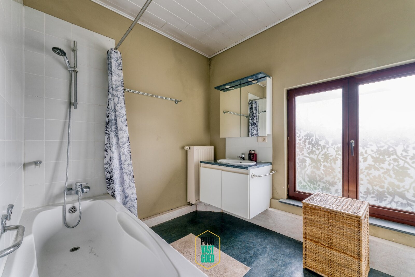 Op de eerste verdieping ligt een royaal appartement met zicht op de Ryelandtzaal. Het beschikt over een vernieuwde keuken, een eetplek met zicht op een groot en aangenaam dakterras, twee ruime slaapkamers, een badkamer met inloopdouche en een zeer grote extra ruimte die vandaag wordt gebruikt als was- en speelruimte, maar ook andere invullingen toelaat.