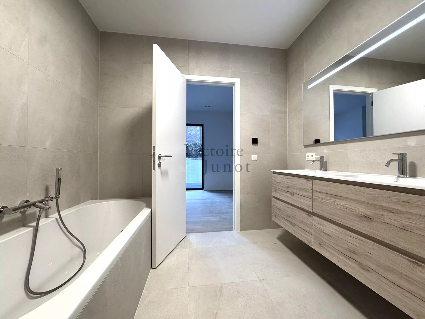 De 2 slaapkamers (16 en 10 m²) hebben beide een badkamer (met bad, dubbele wastafel en apart toilet) en een doucheruimte (met enkele wastafel en douche) en suite, en profiteren van het terras op het zuiden. Een apart toilet en een bijkeuken/wasruimte maken deze woning compleet.