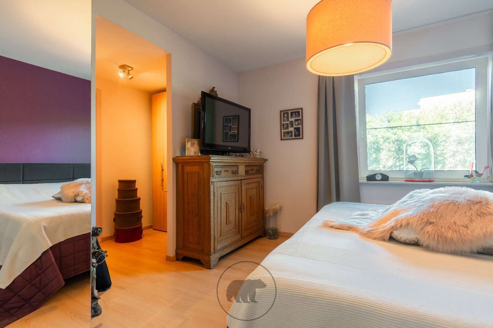 Op de tweede verdieping van deze duplex zijn er nog twee slaapkamers en een tweede badkamer met ligbad.
