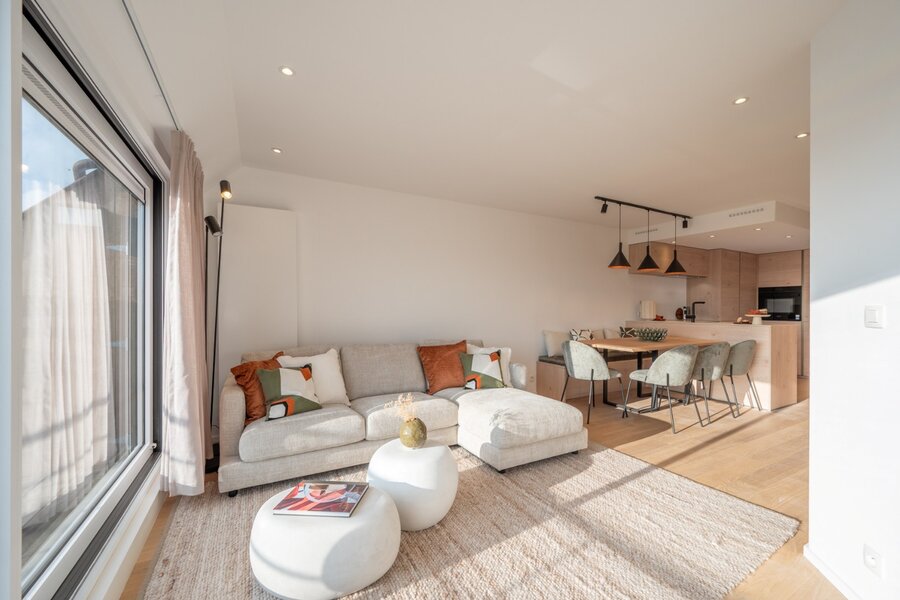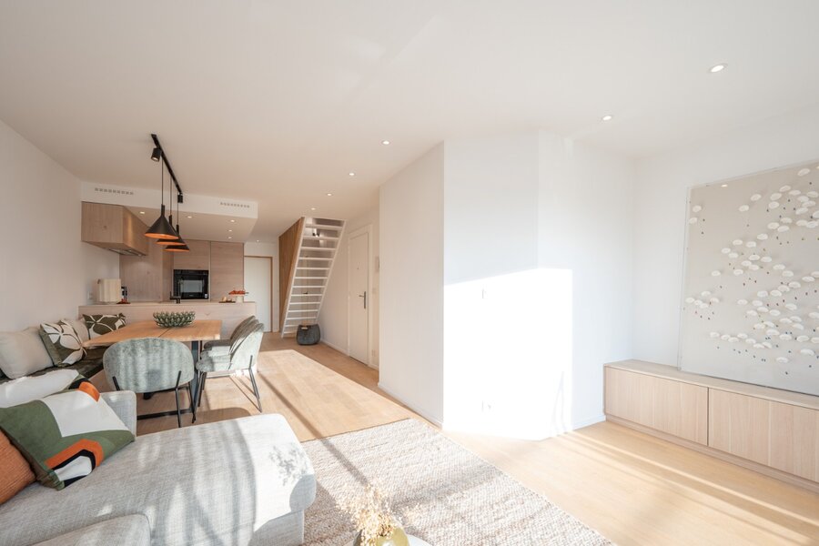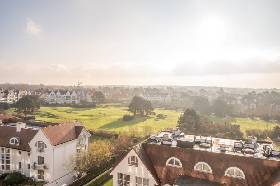 Prachtig gerenoveerde penthouse met een ruim zuidgericht terras en een schitterend uitzicht over de Approach Golf en de charmante villa’s van het Zoute. Het appartement geniet een topligging langs de Kustlaan, op enkele stappen van de winkels en het strand.