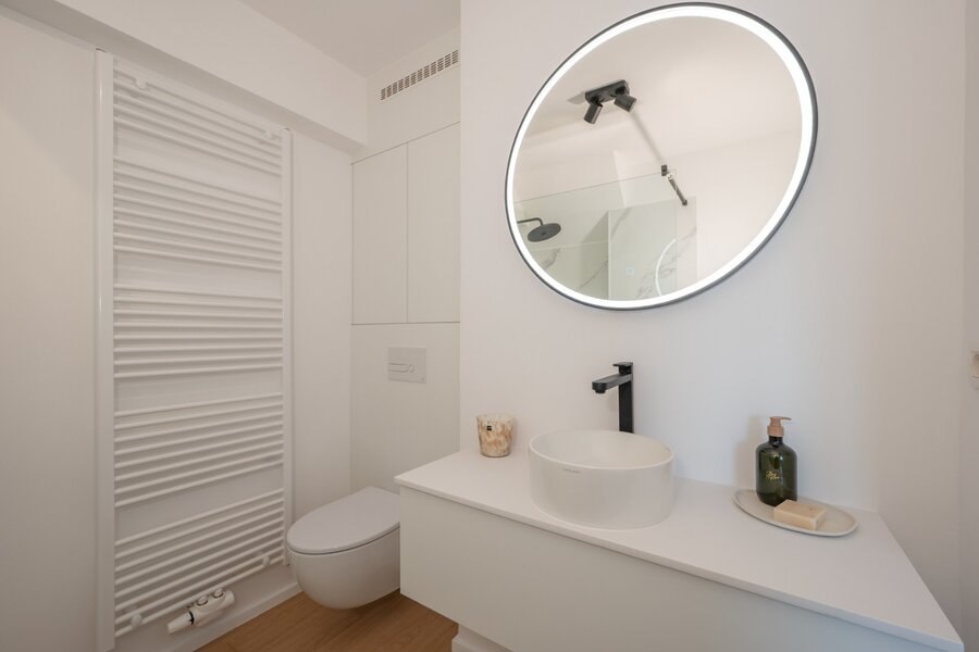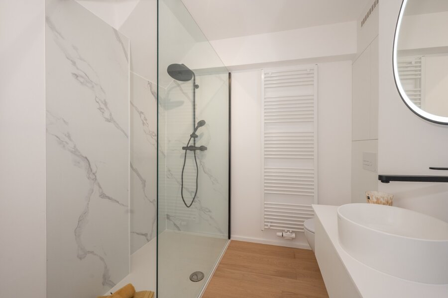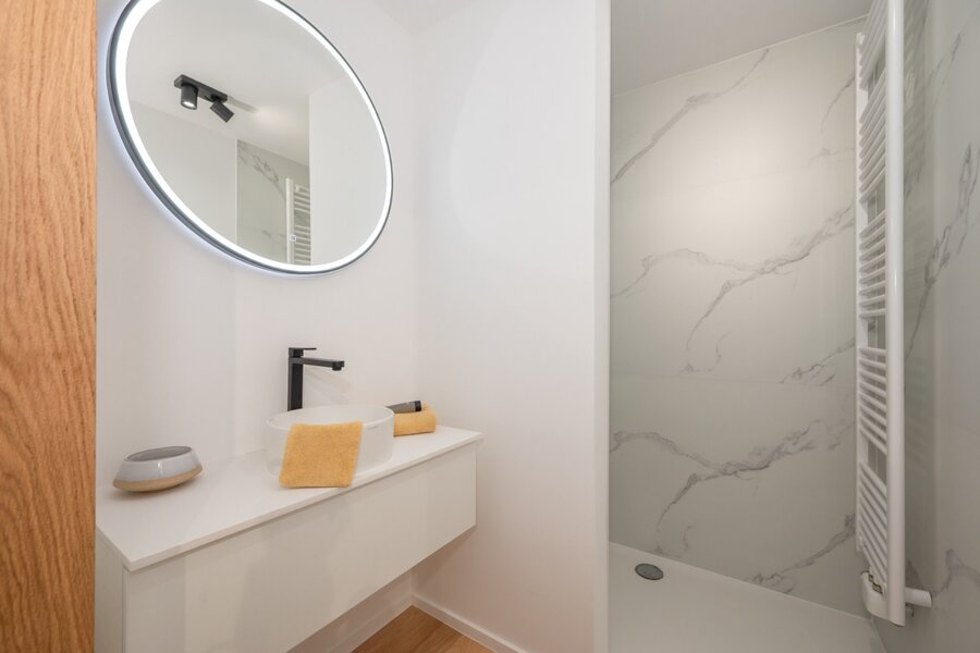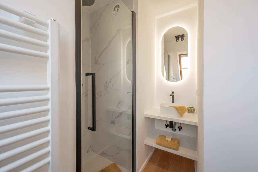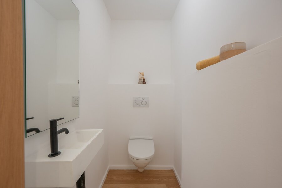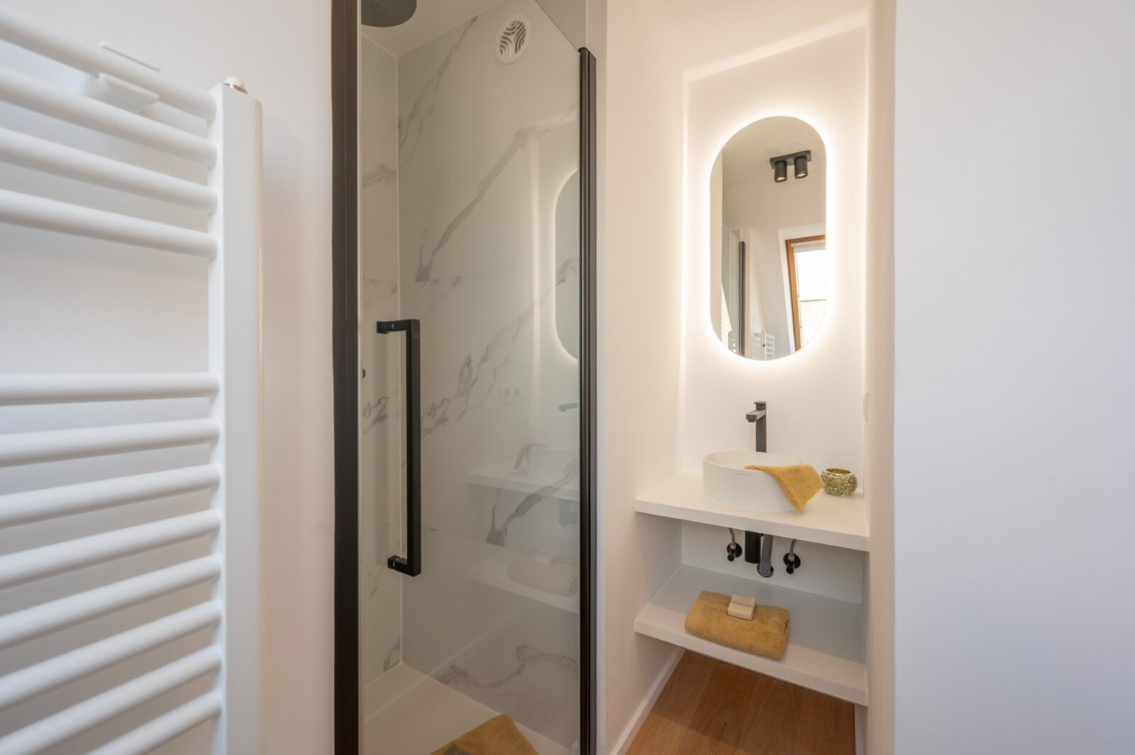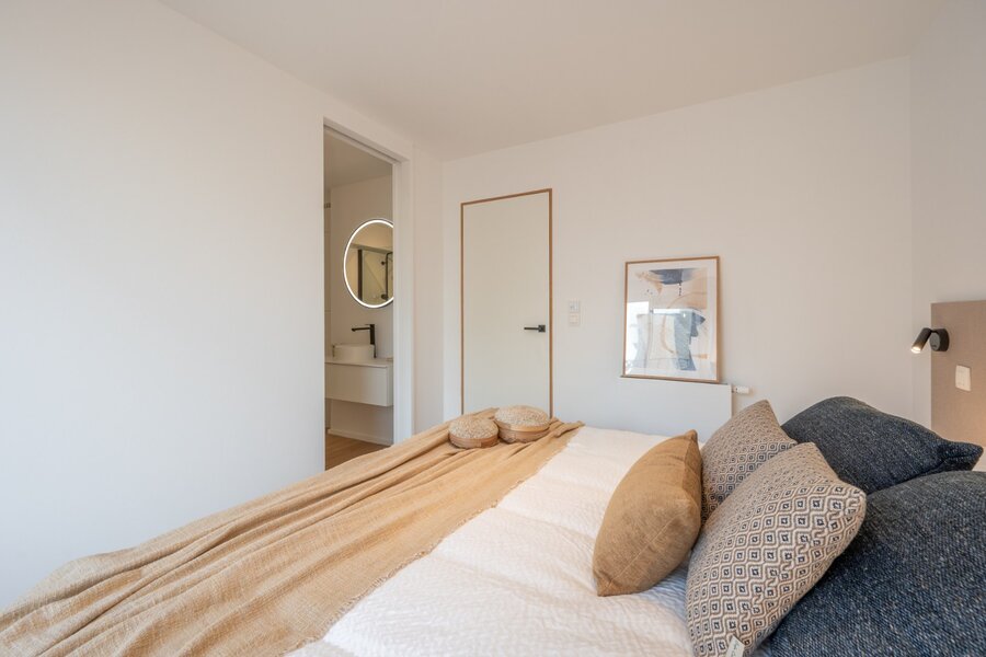 Op de bovenste verdieping bevinden zich twee volwaardige slaapkamers, elk met een eigen badkamer.