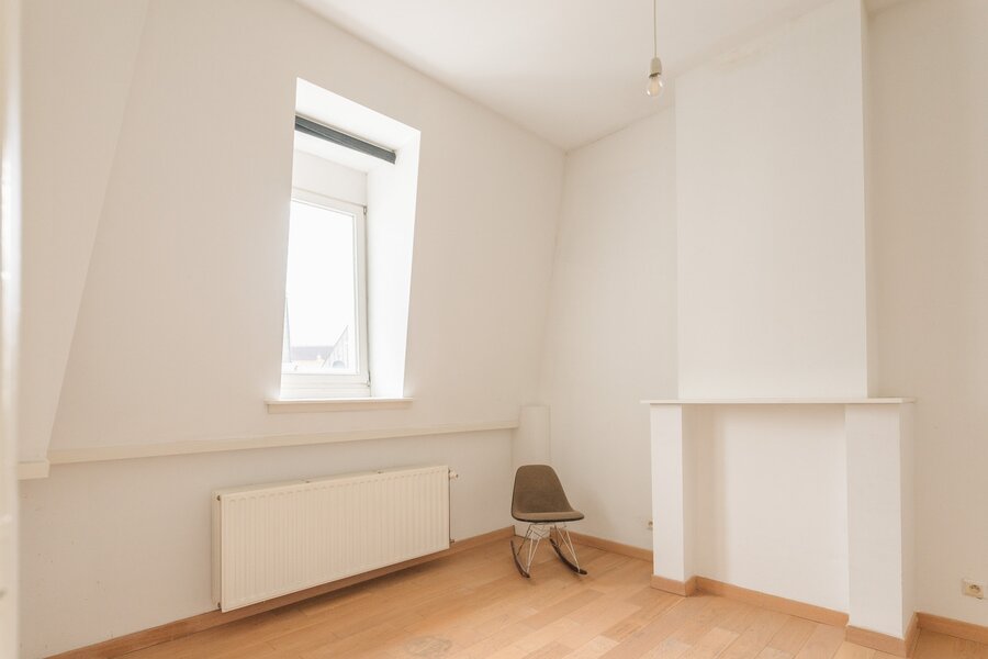 Op het gelijkvloers vormt de lichtrijke hoekleefruimte samen met de maatwerkkeuken een warm en uitnodigend geheel, waar bovendien de mogelijkheid tot een haard zorgt voor extra sfeer en authenticiteit. Op de eerste verdieping bevinden zich de slaapkamer, badkamer en het heerlijke privéterras op het keukendak. De badkamer is een bijzondere troef: een royale ruimte met vrijstaand bad dat volledig tot zijn recht komt binnen het statige karakter van het huis. De tweede verdieping telt twee volwaardige slaapkamers, terwijl de kelder plaats biedt aan de technische ruimte en wasplaats.