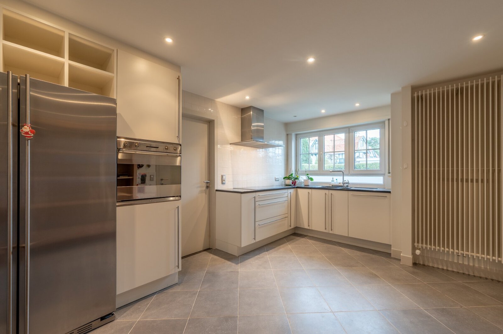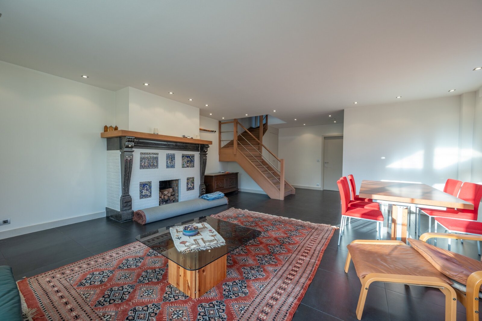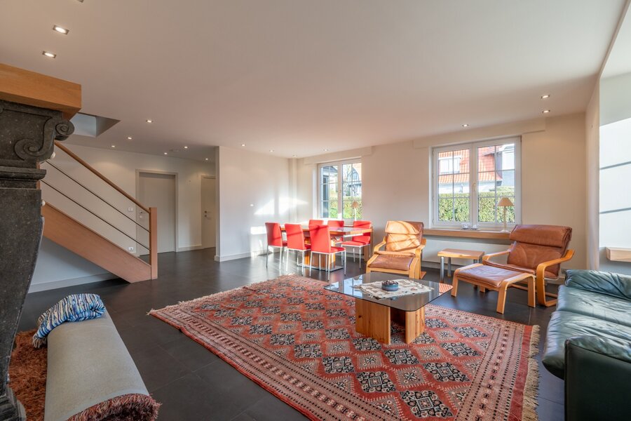 Via de ruime inkomhal met vestiaire en gastentoilet komt u binnen in de gezellige en lichtrijke leefruimte, waar de open haard meteen voor een warme sfeer zorgt. Aansluitend bevindt zich een aparte, volwaardige keuken met toegang tot de eerste inpandige garage.