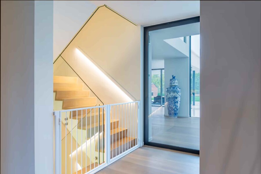 Deze vrijstaande luxe villa is gelegen in een groene en rustige omgeving aan de rand van het natuurgebied 'Hochter Bampd'. De moderne stijl van de woning is gecombineerd met warme accenten en veel lichtinval door de hoge ramen. De villa van ca. 519 m2 is gebouwd door de eigenaar in 2016 en heeft drie verdiepingen met een royale living, open keuken, drie slaapkamers met een ensuite badkamer in de master bedroom én badkamer voor de twee overige kamers, kids playroom, kelder met kantoor en opslag, een garage voor maar liefst 6 wagens en een ruime tuin met terras en speelaccommodaties voor kinderen. De woning ligt dichtbij diverse restaurants, winkels en supermarkten. Voor gezinnen is de woning perfect gelegen in de buurt van een basisschool. Met de auto, fiets en het openbaar vervoer bent u binnen no-time in het geliefde Maastricht.