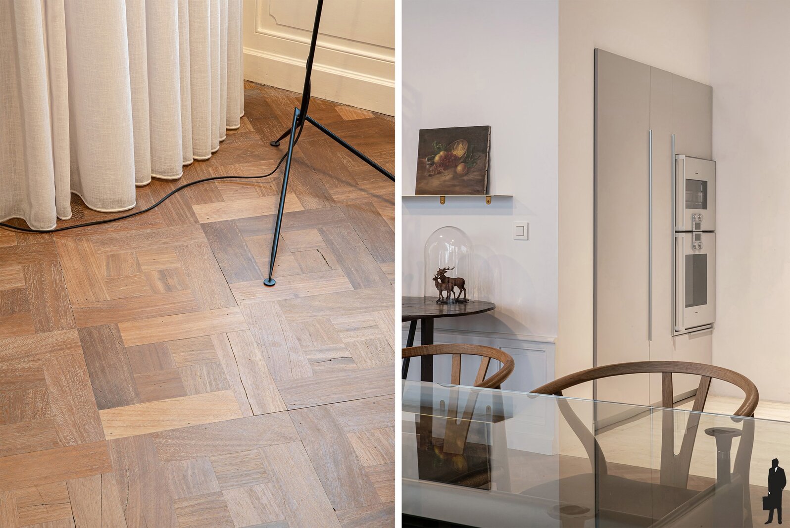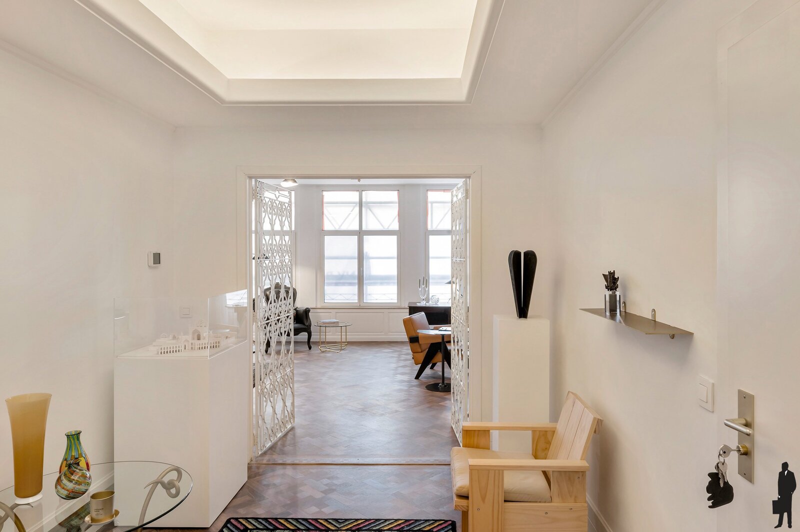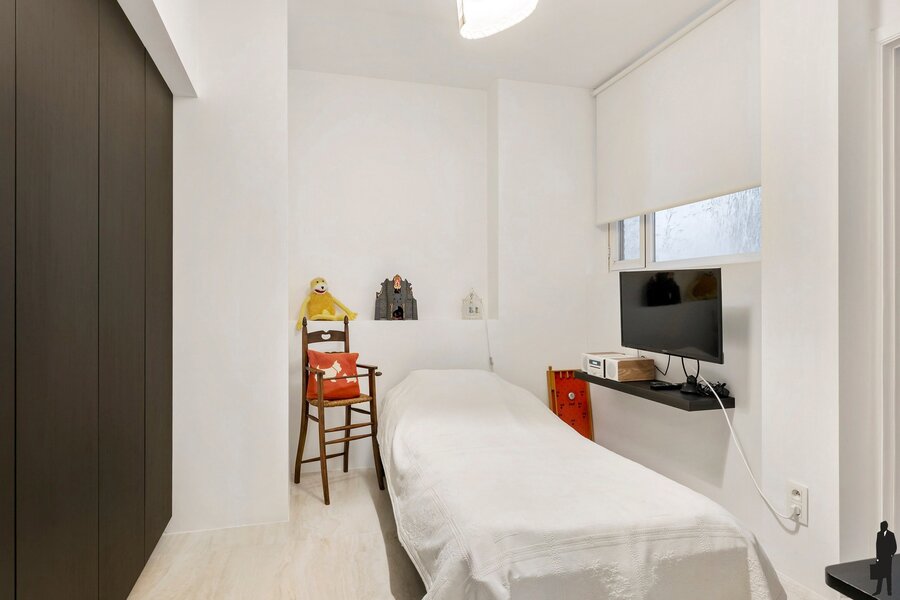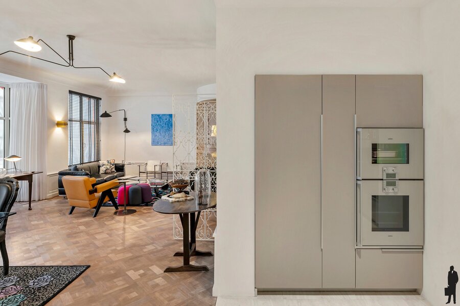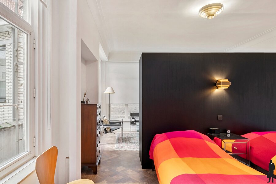 Het appartement werd volledig en hoogwaardig gerenoveerd met respect voor de authentieke elementen. De originele parketvloeren werden behouden en vormen samen met de nieuwe kwaliteitsramen een perfecte combinatie van charme en hedendaags comfort.
