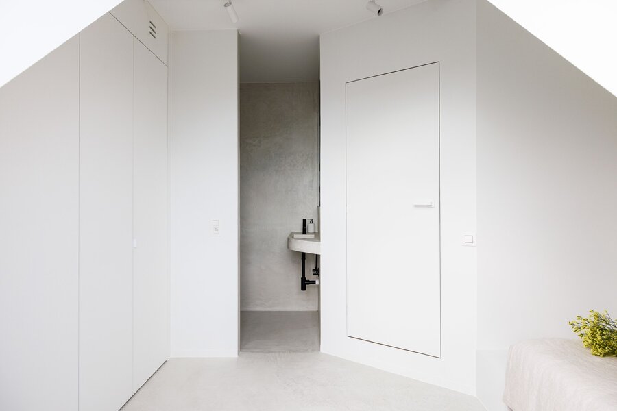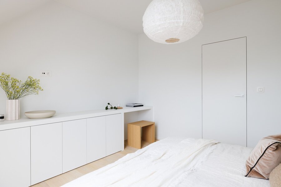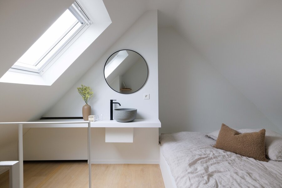 De tweede verdieping is ingericht als een elegante suite, met een ruime bureauhoek en een royale badkamer voor twee personen. Deze badkamer is naadloos geïntegreerd met de master bedroom, waardoor een gevoel van luxe en privacy ontstaat. Op de bovenste verdieping bevindt zich de derde slaapkamer, die rust en afzondering biedt.