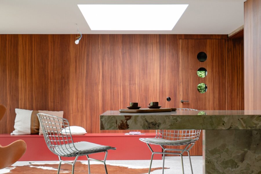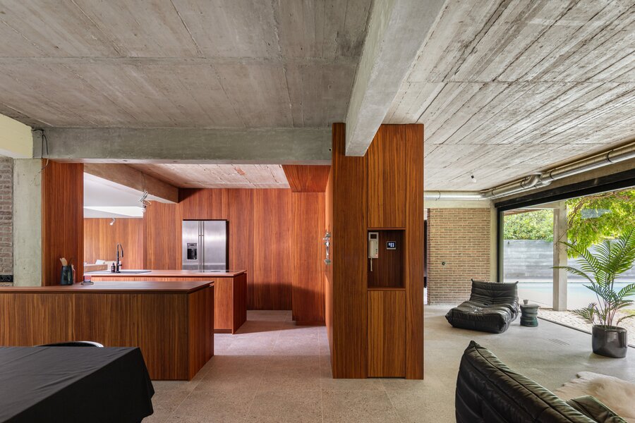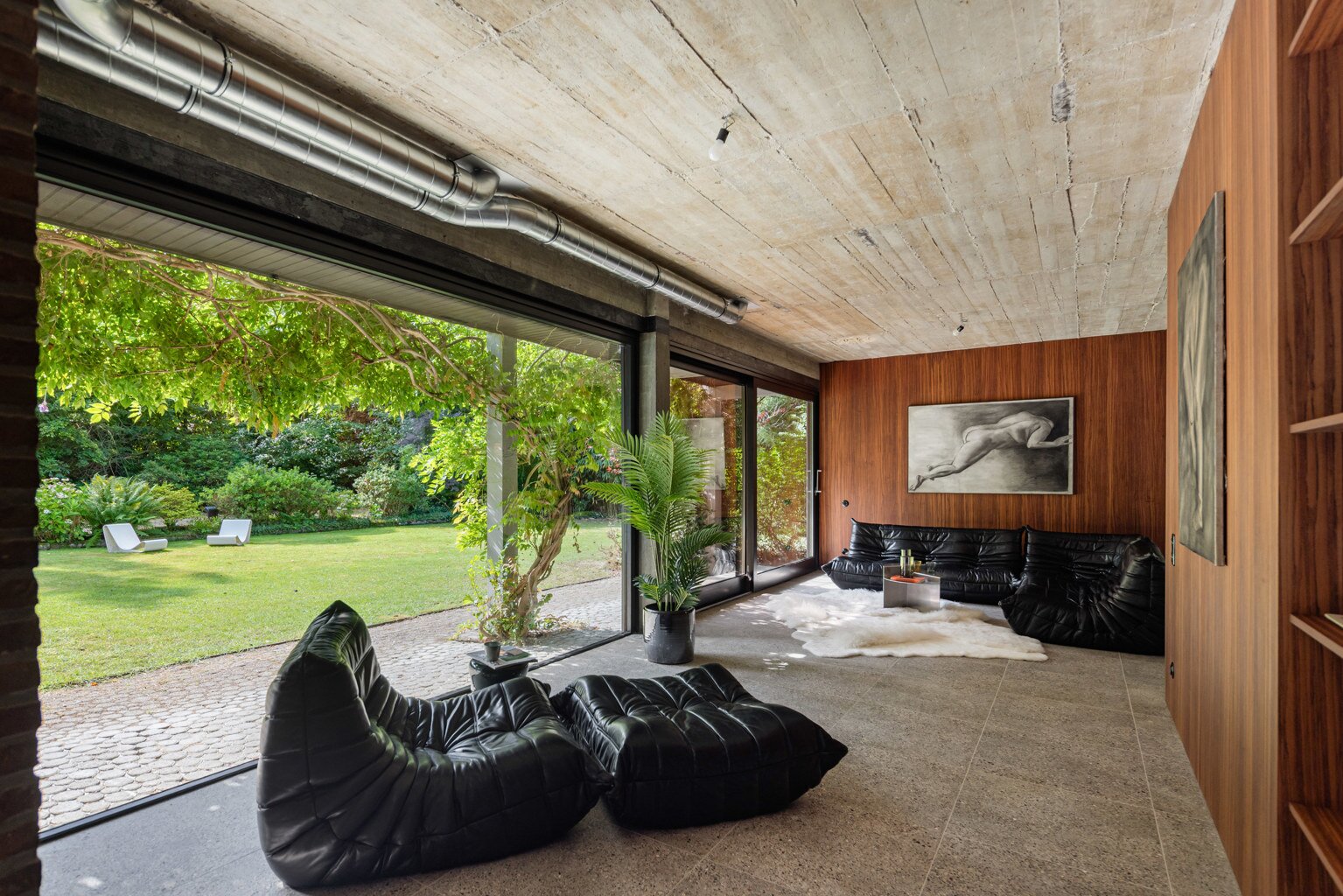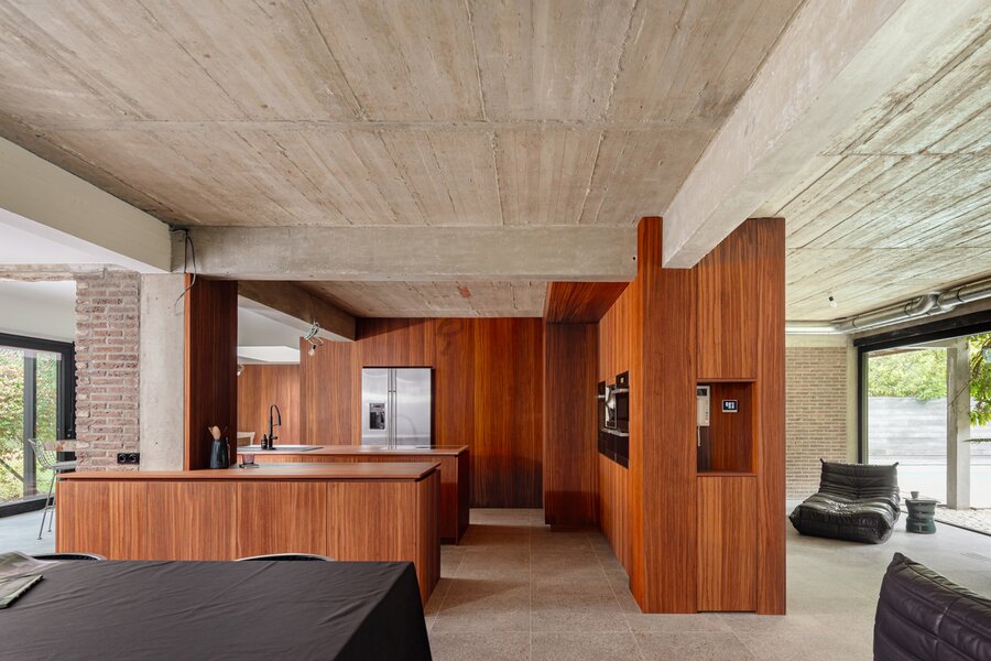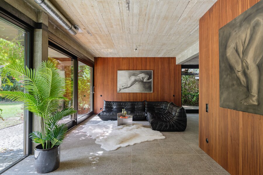 70’s brutalistische villa gehuld in warme gloed