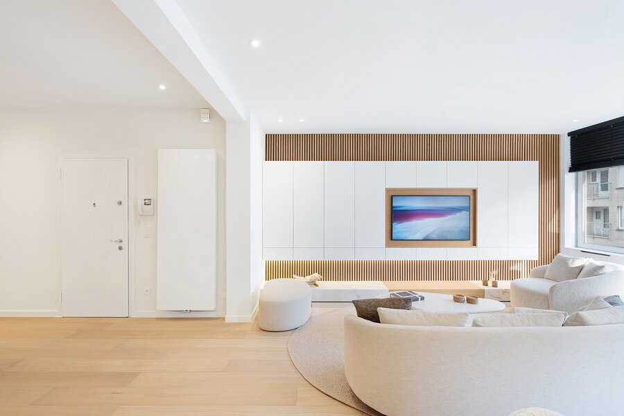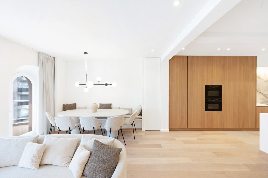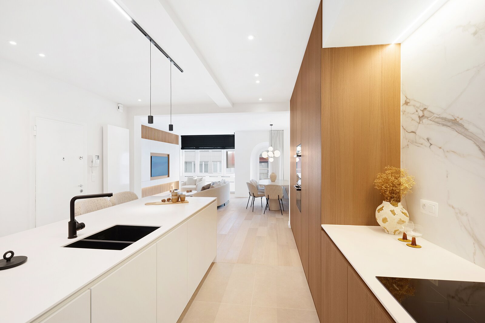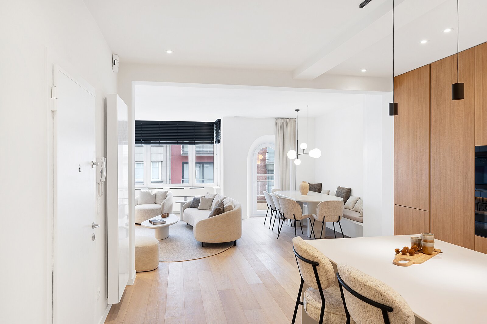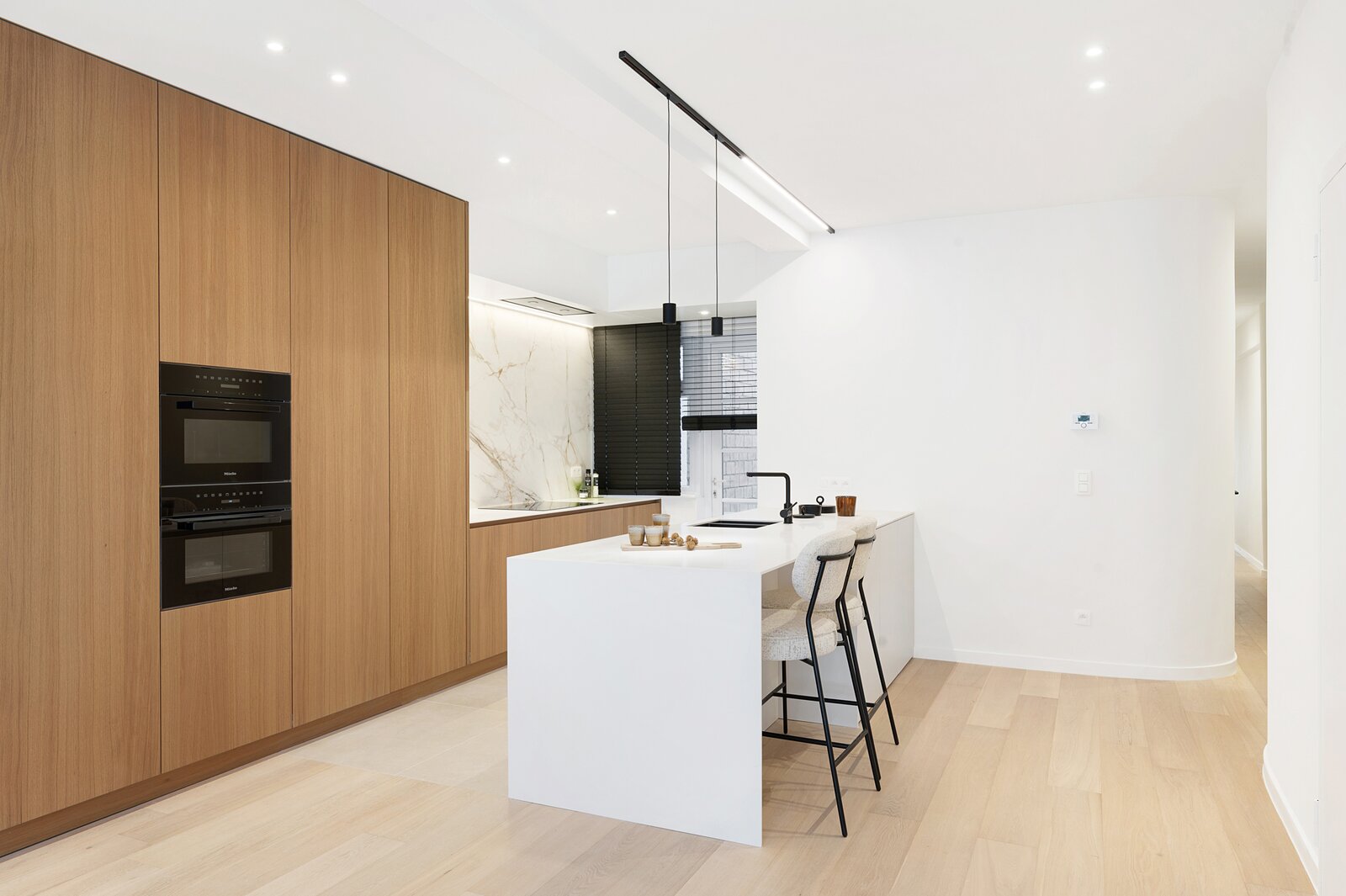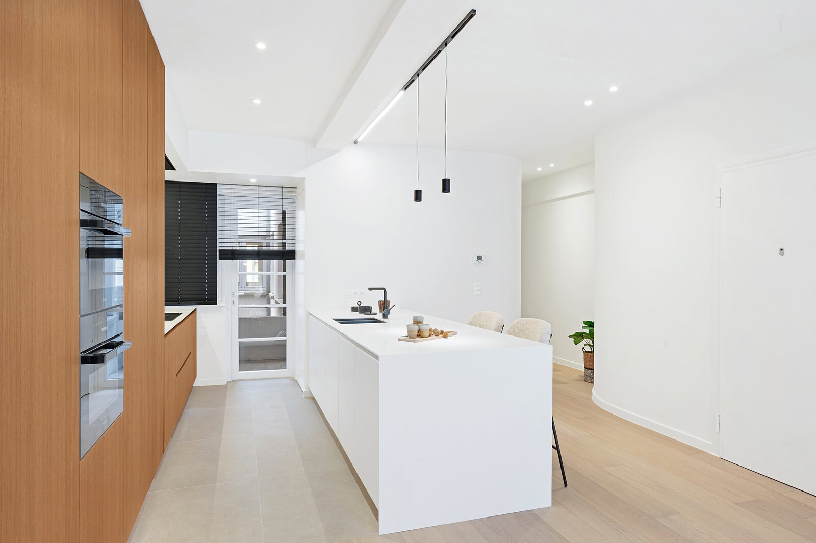 De keuken is volledig uitgerust met Miele-apparatuur van topkwaliteit, waardoor het een ideale plek is voor culinaire liefhebbers. Elk detail van de renovatie is zorgvuldig uitgevoerd met oog voor stijl en functionaliteit, zodat het appartement aan alle moderne eisen voldoet. Alsook beschikt het appartement over een privatieve kelderruimte, ideaal voor extra opslag.