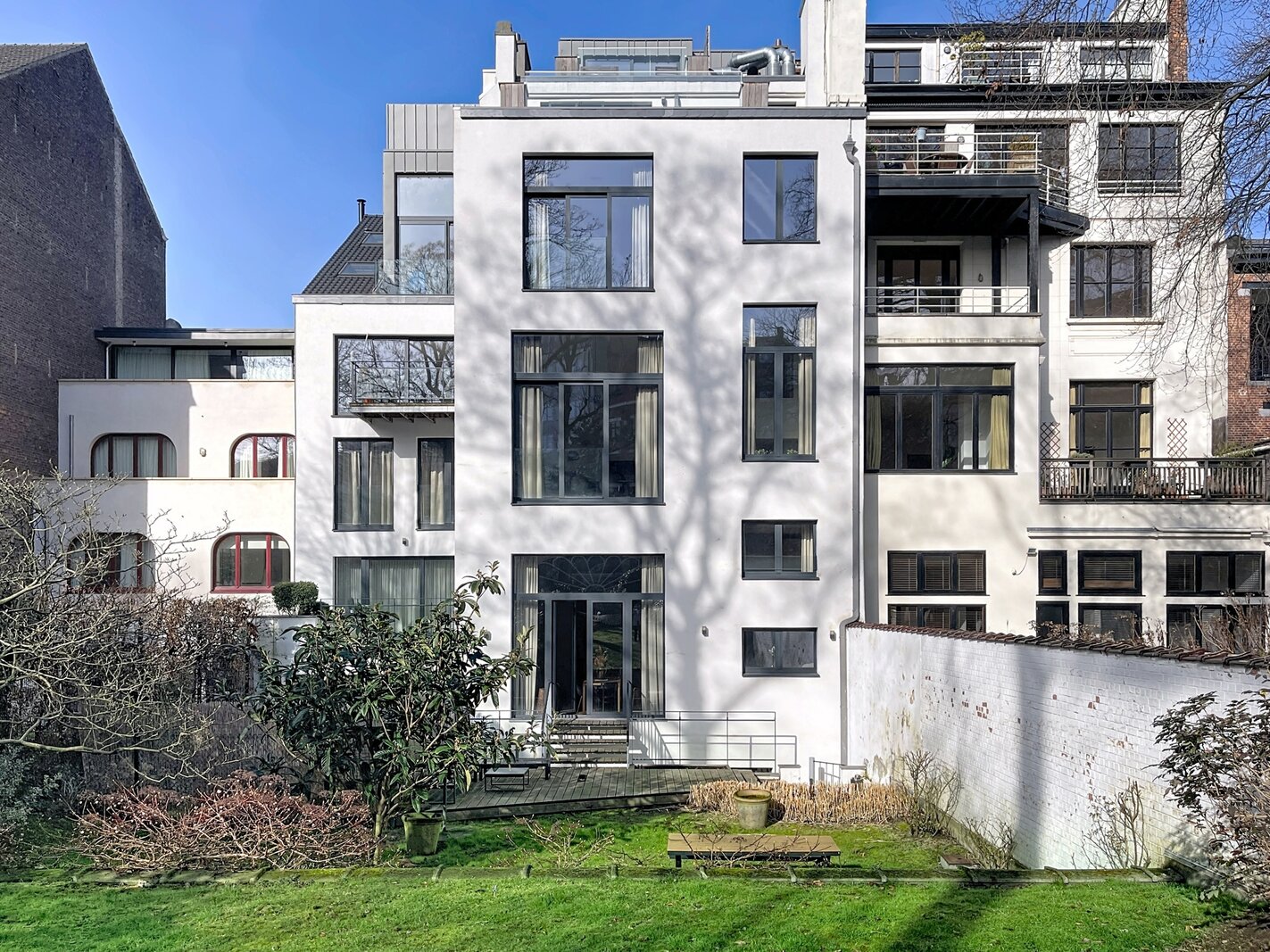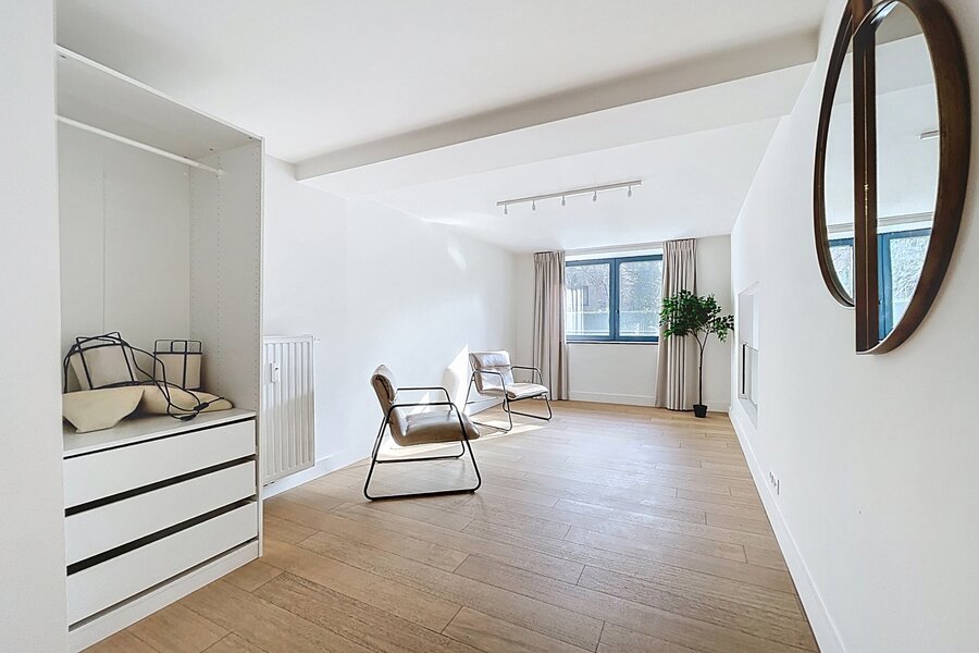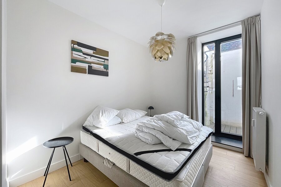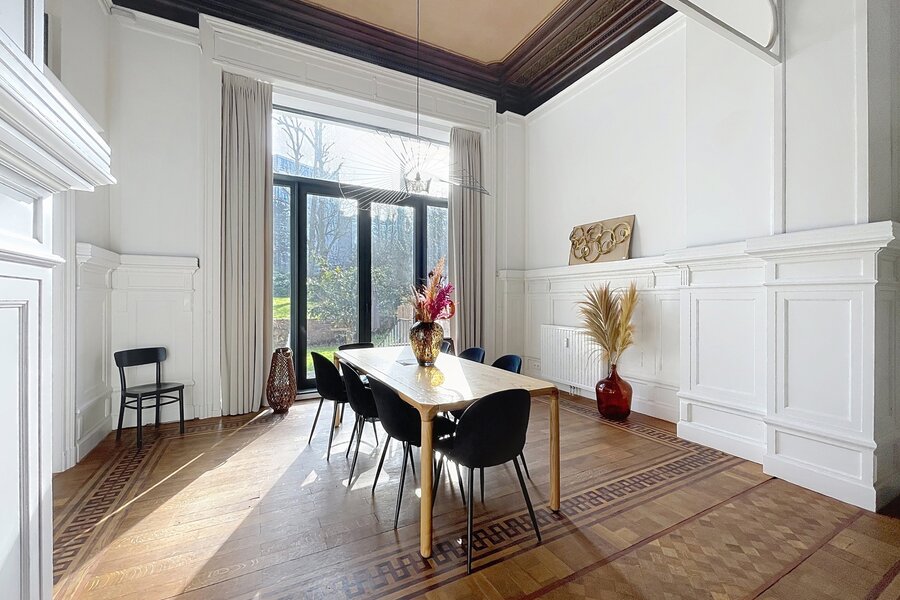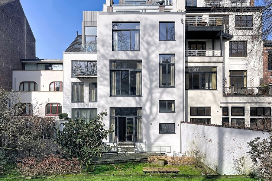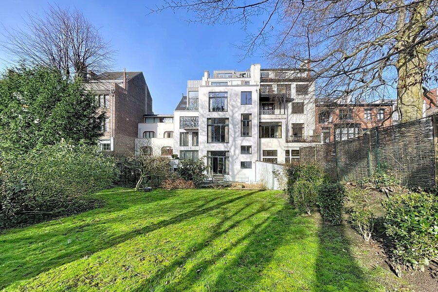 Dit prachtige, gemeubileerde triplexappartement met tuin, gelegen vlakbij de wijken Châtelain en Place Stéphanie, biedt circa 218 m² woonruimte. Het appartement is gerenoveerd in 2021 en bevindt zich in een prestigieus gebouw. Het bestaat uit een entreehal met garderobe, een ruime en lichte woonkamer (circa 50 m²), een volledig uitgeruste keuken, drie mooie slaapkamers (circa 20 m², 13 m² en 11 m²), een kantoor (circa 17 m²), een badkamer met douche, een aparte doucheruimte, een volledig uitgeruste wasruimte en twee toiletten. Een grote tuin (circa 500 m²) is op het zuidoosten georiënteerd. Een kelder is inbegrepen en een overdekte parkeerplaats is te huur tegen een meerprijs (€ 150/maand). Het appartement is voorzien van dub glazing en hoogwaardige materialen. Servicekosten: € 300/maand (inclusief verwarming, water, elektriciteit, internet, onderhoud gemeenschappelijke ruimtes en lift). Energieprestatiecertificaat (EPC): C+. Mis deze kans niet!