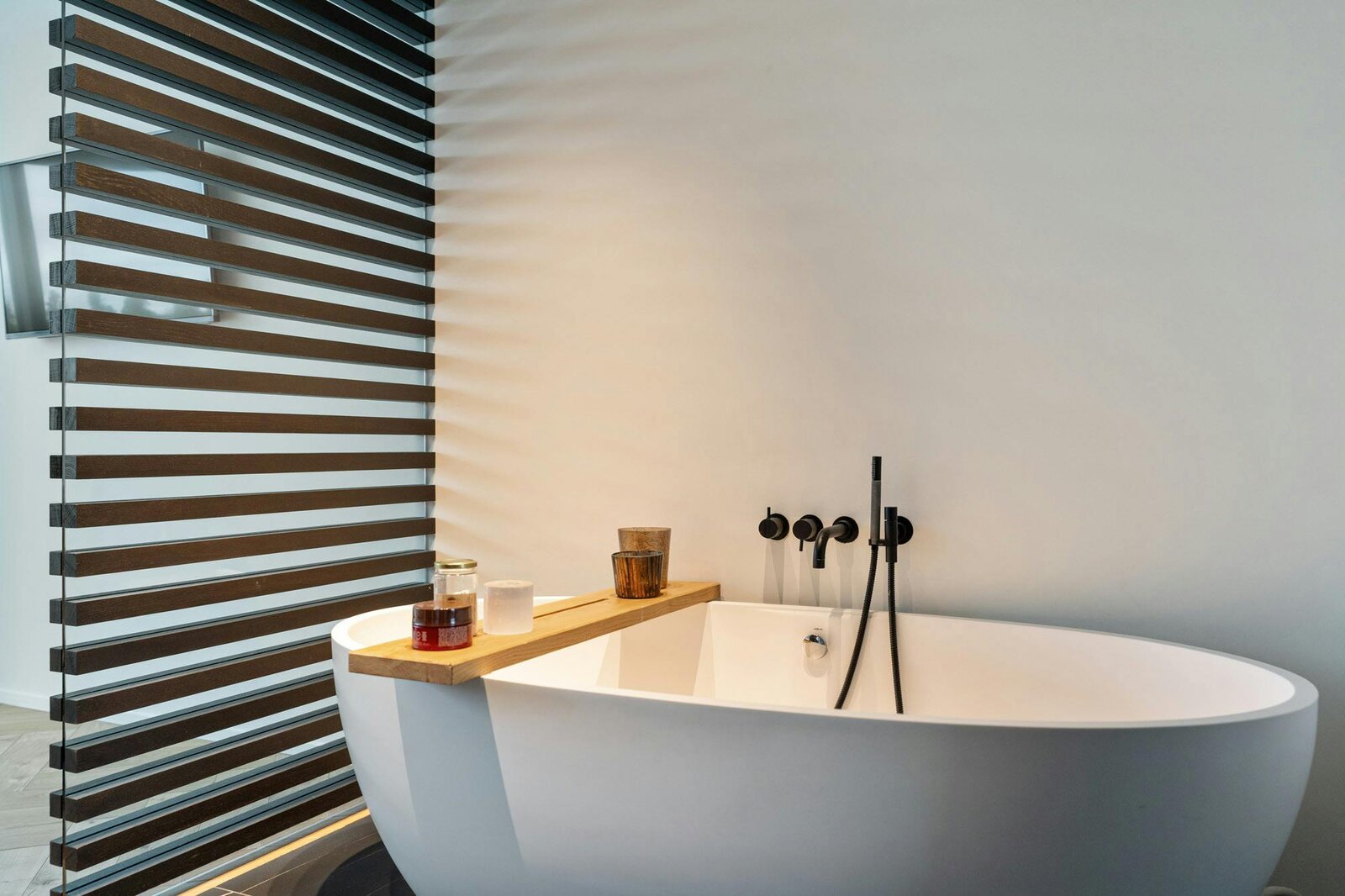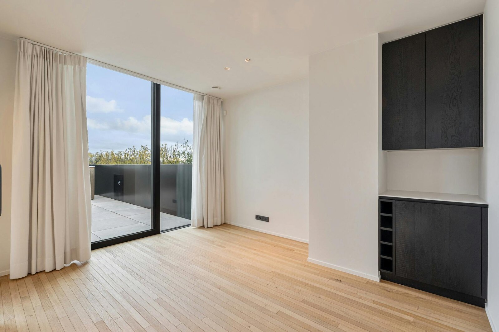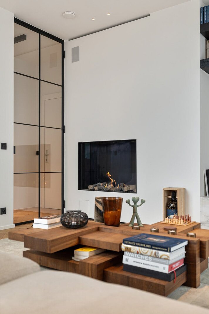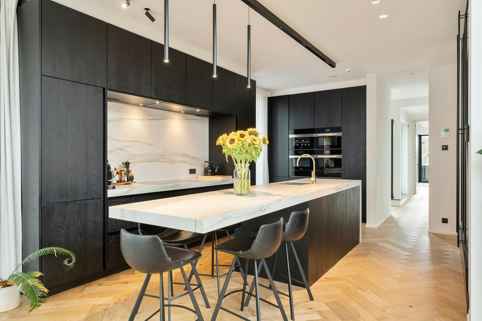 Hoogwaardige technieken zoals vloerverwarming in combinatie met een warmtepomp, domotica en automatische gordijnen zorgen voor een hedendaags wooncomfort dat naadloos aansluit bij de architectuur.
