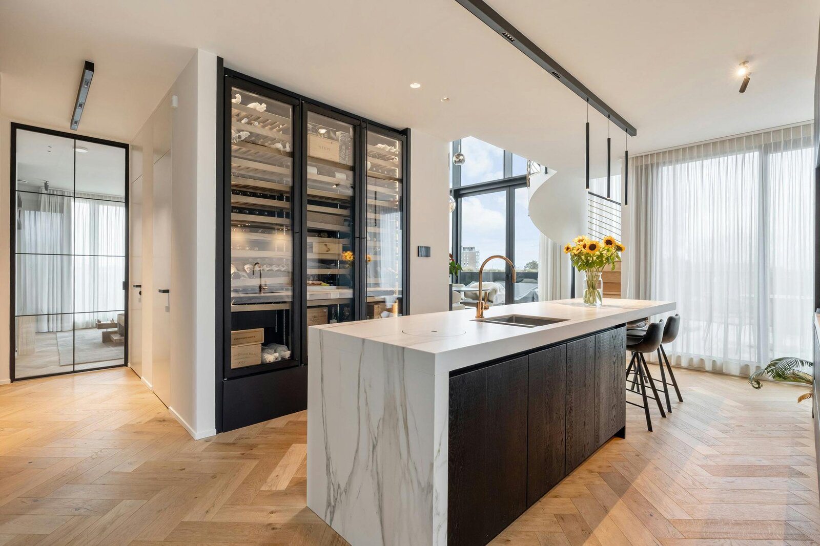 Dit uitzonderlijke penthouse in een recent gebouw uit 2020 combineert moeiteloos luxe, comfort en klasse. Met een royale bruto woonoppervlakte van circa 254 m² en drie zonovergoten terrassen (samen goed voor ca. 97 m²) ontvouwt het appartement zich in lichte, open leefruimtes met spectaculaire zichten. Bovendien moet u niet naar buiten voor ontspanning dankzij de privéjacuzzi op het terras en de inpandige sauna.