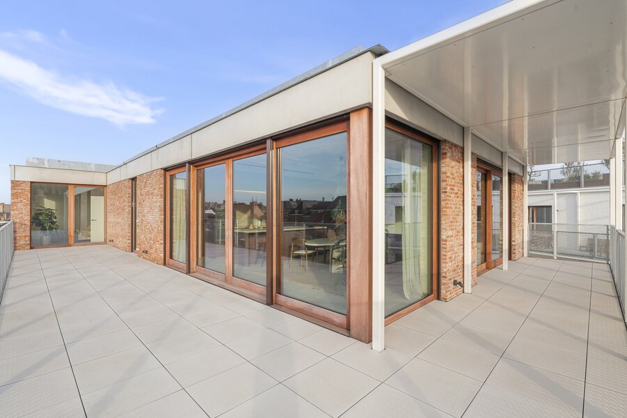 Op het semi-overdekte terras (65m2) kan je de hele dag lang genieten van de zon.