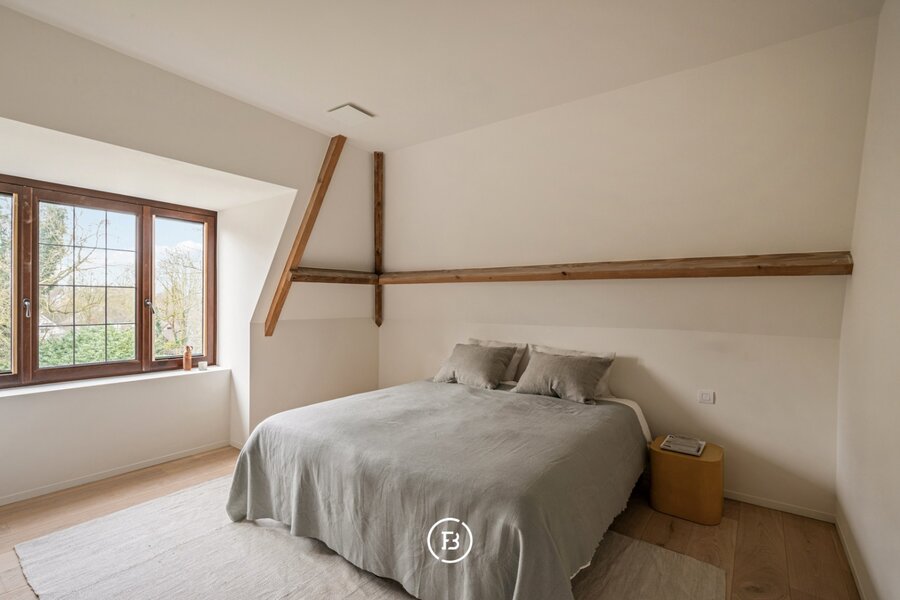 Op de eerste verdieping bevindt zich nog een ruime slaapkamer met badkamer, uitgerust met een ligbad, dubbele lavabo en toilet. Daarnaast is er een aparte berging in de gang.