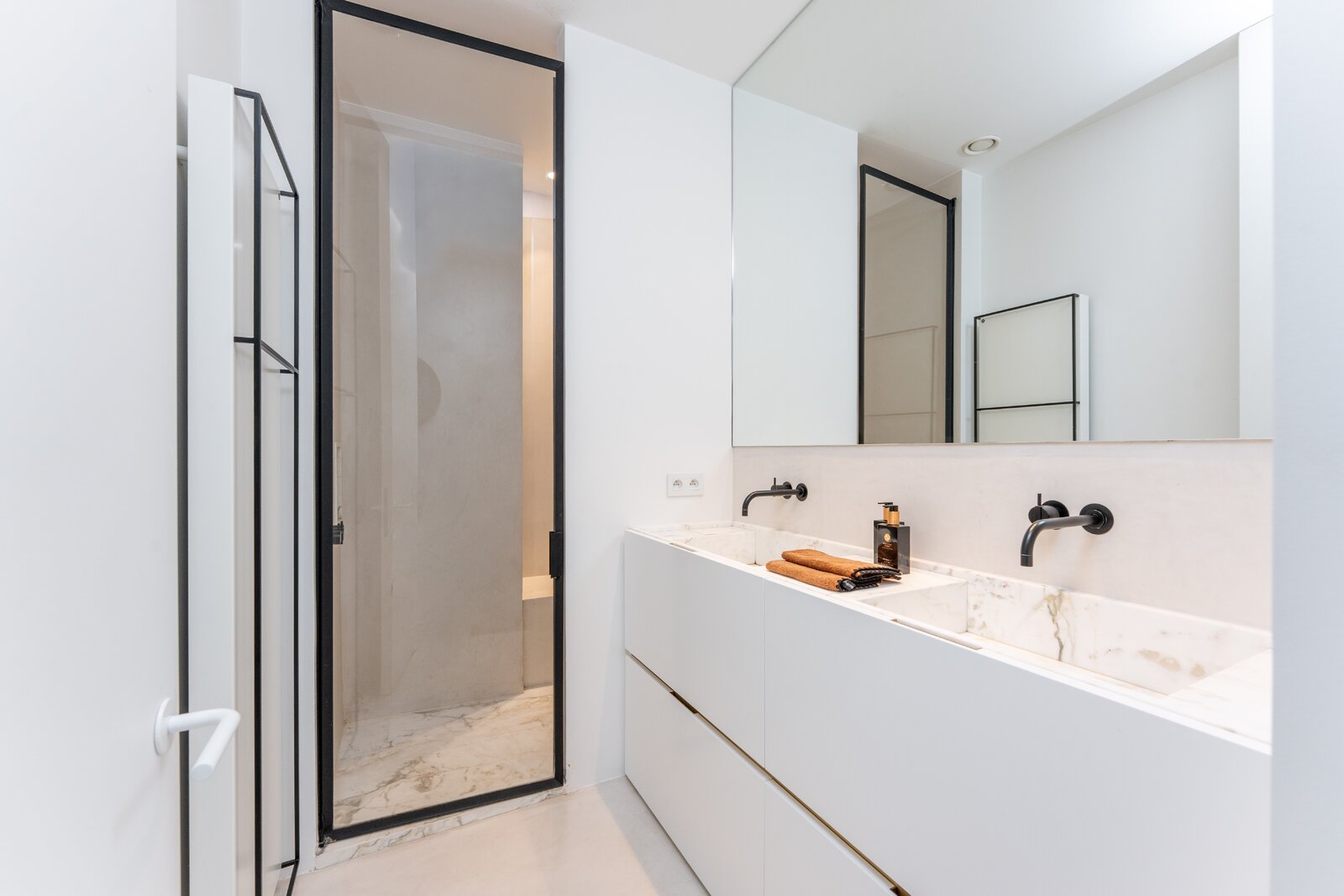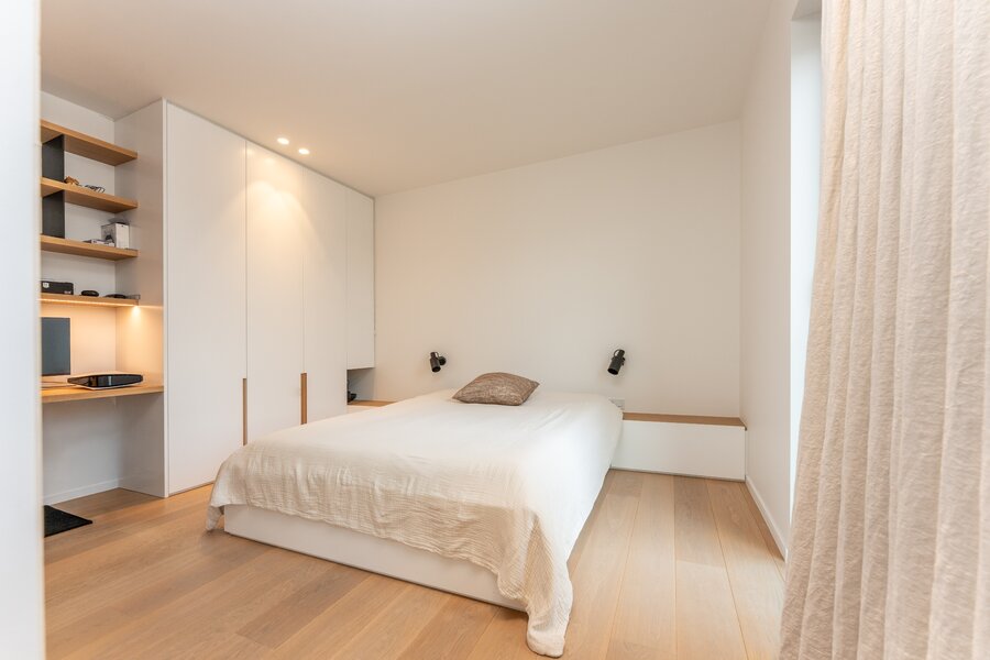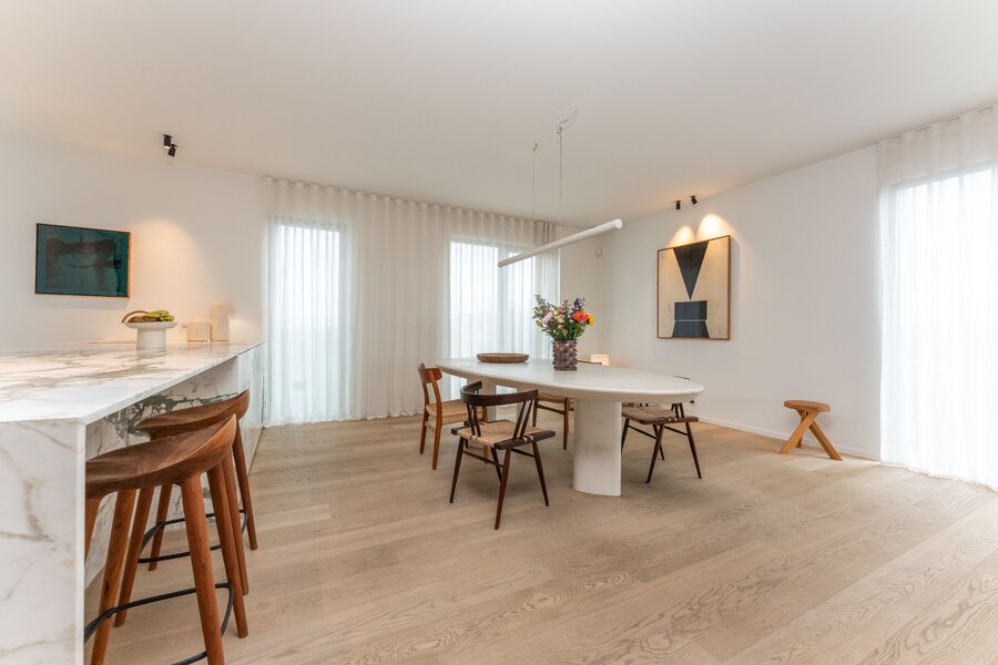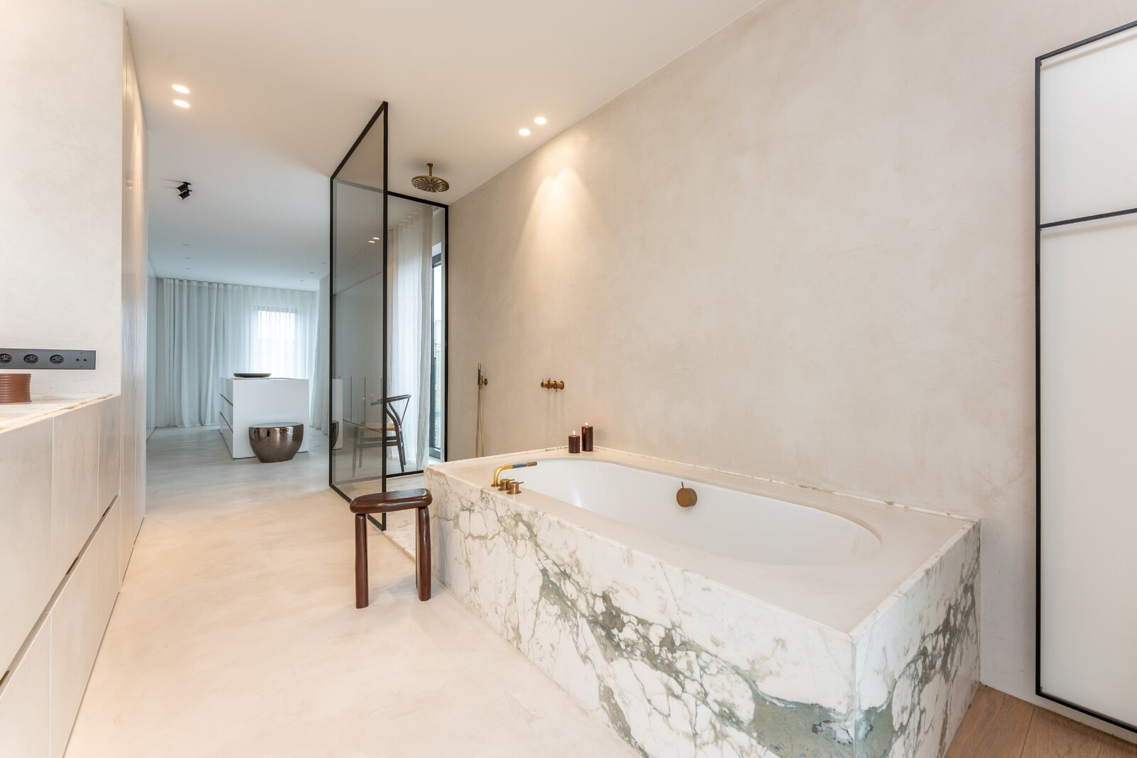 Doorheen het appartement brengen parketvloeren van Woodstoxx, Delta Light-verlichting en Vola-kraanwerk in messing een gevoel van samenhang en verfijning. Het maatwerk van Decolust, samen met de zorgvuldige afwerking en materiaalkeuze, creëert een warme en harmonieuze leefomgeving.