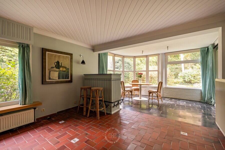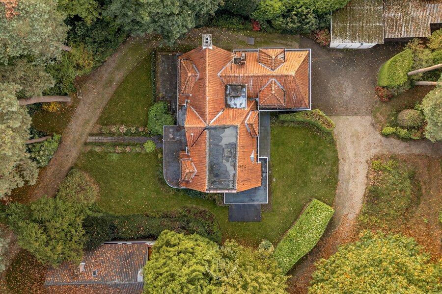 Het domein leent zich perfect tot een grondige totaalrenovatie met eventuele uitbreidingen, maar even goed kan hier een nieuwe, verfijnde villa worden gecreëerd. Het potentieel tot heropbouw werd reeds aftoetst bij de gemeentelijke diensten: binnen de richtlijnen van het woonparkgebied kan u maar liefst tot 10% van de perceeloppervlakte benutten voor de bebouwbare oppervlakte. Ook het opsplitsen in twee hoogwaardige loten van circa 3.500 m² behoort tot de mogelijkheden.