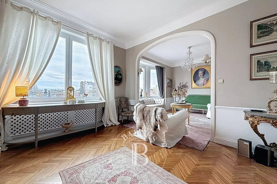 Barnes biedt een uitzonderlijk appartement aan in de gewilde buurt van de Place Brugmann. Deze woning, met een totale oppervlakte van 129 m², onderscheidt zich door zijn verfijnde afwerkingen en geoptimaliseerde indeling. U wordt verwelkomd door een inkomhal die leidt naar een lichte woonkamer van 40 m², perfect om te ontvangen en te ontspannen. De lange gang leidt u vervolgens naar twee ruime slaapkamers van 17 m² en 13 m². De moderne, volledig uitgeruste keuken beslaat 12 m², terwijl de badkamer smaakvol is ingericht. U profiteert ook van een aparte toiletruimte voor extra gemak. Een bureau van 5 m² en twee kelders maken deze woning compleet, wat extra opslagruimte biedt. Ideaal gelegen, bevindt dit appartement zich dicht bij alle voorzieningen, winkels, openbaar vervoer en groene ruimtes. Energieprestatiecertificaat (EPC) E. Elektriciteit niet conforme.